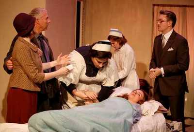 All of these medical-themed shows owe tribute to Sidney Kingsley's Pulitzer Prize-winning Men In White, originally produced by the Group Theatre back in 1933. Though quite successful at the time (while still in its Broadway run, it was made into a movie starring Clark Gable and Myrna Loy),Men In White has rarely been produced since. Now it is back, on view at ATA's Sargent Theater in a solid production by the always-exciting Seeing Place Theater company. Seeing Place is in its fifth season of visceral and imaginative productions under the leadership of its managing director Erin Cronican and its artistic director Brandon Walker. Walker, a nominee for a New York Innovative Theatre Award for his portrayal of the title character in John Patrick Shanley's Danny And The Deep Blue Sea, stars as Dr. George Ferguson, a hotshot young doctor at a New York hospital. George is a young man on the rise, aided in no small way by his association with the socialite Laura Hudson (Ms. Cronican) and her wealthy and influential businessman father (the excellent Stewart Steinberg). Early on, George intervenes in the treatment of a young girl under the care of a more experienced doctor, and saves her life. He is also the protégé of the dedicated and highly respected surgeon Dr. Leo Hochberg (Mark Gorham) and plans to take a year's leave to study in Vienna with yet another world-class physician. He is popular among the younger doctors, is happily engaged to be married to Laura, and is being groomed for a top position at the hospital by his prospective father-in-law. All is well with the world, until George is faced with an array of problems in which he learns that life-and-death decisions do not always turn out to be triumphs of medicine over disease. Indeed, one of the strengths of the play is its disclosure of decidedly ineffective or questionable medical practices, and a plea for the furtherance of medical research. We watch, for example, as George comes up with the only treatment he can think of for a woman who has been diagnosed with tuberculosis: take her to a dryer climate for a rest cure. (In the scene, it is clear that her chances for recovery are quite slim). There are also several references to the casual dispensing of narcotics as a routine form of pain relief, another of the playwright's issues that has been expanded on in such modern TV fare as Nurse Jackie and House. But the major shocker of the play concerns the death of a nurse with whom George has had a brief sexual relationship. Barbara, the nurse (well-played by Martine Moore), has had a long-standing crush on George, and arranges to spend a night with him in his room. George, recovering from a quarrel with Laura, turns to her for solace. Unbeknownst to George, their encounter has left Barbara pregnant, and the scene surrounding her death on the operating table following a septic back alley abortion undoubtedly played a major role in earning the play that Pulitzer Prize. Certainly, this does sounds very cliché-ridden, like the stuff of one of those TV shows I mentioned, but it is important to recognize that Men In White was the "mother ship" for all those that followed. The interactions among the doctors, the arguments over various forms of treatment, the role of money in operating a major hospital (this was during the Great Depression, remember), and the sacrifices that physicians' families were expected to make all were fresh fodder for Sidney Kingsley to examine. The Seeing Place has put together a fine cast, and a rather large one at that (17), especially for a company that is called upon to pull the rabbit out of the hat on a shoestring budget. The roles are played by a mix of Equity and non-Equity actors, with many of them turning in top-notch performances. The company's two stalwarts, Ms. Cronican (who directs the production as well) and Mr. Walker do excellent jobs of bringing their characters to life and making them psychologically credible. The role of Laura, for example, looks on paper to embrace the typical image of the pushy and demanding socialite, full of ambition for her fiancé. But Ms. Cronican makes it clear that Laura really does love George and wants nothing more than for him to settle into a relatively normal lifestyle with normal working hours instead of embracing the life of a 24/7 doctor carrying the world's burdens on his shoulders. Mr. Walker brings out shades of character in George, as well, and the golden boy that is suggested in the writing seems more of a man uncertain of what it is he actually wants out of life. He is the son of a dedicated physician, whose motto was "above all is humanity." Yet George is not without ambition himself, and, certainly, his is culpable in Barbara's death, even if the play pretty much lets him off the hook. Mr. Walker goes through the play with a certain deer-in-the-headlights look that makes us wonder how he will turn out, especially since the playwright offers up several older burned-out doctors as potential models of where George might end up in time. Men In White cannot avoid a bit of the air of musty melodrama, especially since we have been exposed to so many variations on its themes over the years since its original appearance, but it not hard to understand why the issues it raised drew the attention of the Pulitzer Prize voters. The Seeing Place is to be commended for the fine job it has done in bringing it back to the New York stage.