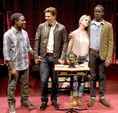 The only thing that makes this terminally confused show concretely fascinating is that it happens to be about shattered and jumbled identities itself. Of the three intertwining stories on which Bradshaw focuses, none of the major players know who they're supposed to be or why. Chris, who moves from San Francisco to New York after his mother's death from a cocaine overdose in the early 1980s, is a gay boy with dreams of acting who doesn't know how terrible he is, but ends up living (and cavorting) with a famous actor and his professional and personal partner, Jack and Simon, in Greenwich Village. Franklin is a 19-year-old black man in the present day who has just lost his own mother to a drug overdose and decides to reconnect with his cousin, Peter, a painter who goes to extravagant lengths to pretend he isn't black, and his white British wife, Josephine. Then there's Michael, a neo-Nazi who lives in Berlin and cares for his adolescent sister Katrin in the wake of their parents' deaths in a car crash a year earlierhe works at an art gallery. Uh oh. Certainly this would be enough for most plays, but Bradshaw doesn't stop there. He also introduces a subplot about Jack and Simon's latest stage venture, in which a businessman and his buddies abuse a sex slave in Cambodiaexcept, er, Broadway audiences won't like that, so the playwright, Donald, had better change it to a single businessman (cheaper to produce, don't you know) who goes to Cambodia, buys the girl, and raises her to be Miss America. This gives Chris plenty of opportunity to fall for the playwright, disown his "parents" (as Jack and Simon insist he call them), and set off on his own. To Germany. I'd love to be able to say you can't guess where all this is going, but you can. For all its twisted twistiness, the script derives its sole instances of creativity from the unsettling ways in which it presents its plot points. Take, for example, this exchange from the second act, when Jack and Simon discover Chris has spent the night with Donald. "You're a pedophile," Jack fumes. "It's disgusting." Donald, ever the realist, retorts, "You guys had sex with him too." That really sets Simon off: "We're his parents!"