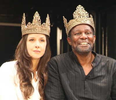 Theatre For A New Audience, the producing company, and director Michael Boyd, who also edited the version of the script used in the performance, are to be commended for bravely taking on the play, which has not seen a major production in New York in 58 years. It is no walk in the park for either the actors or the audience, clocking in at three-and-a-half hours, including a 30-minute break between Part I and Part II. And, with a few exceptions that actually seem out of place, the tone is unrelentingly bleak. The basic plot is this: Tamburlaine (John Douglas Thompson, always a powerful theatrical presence), a Central Asian warrior, decides to attack some city-state and demands that its king capitulate or face the consequences. The king declines and sets his soldiers on Tamburlaine's army. Tamburlaine goes on a rampage, destroying every man, woman, and child in his path, adds the crown to his growing collection (we actually see the pile of crowns late in this production), and moves on to the next city-state where the scenario, or a variation thereof, repeats. With power comes the insatiable desire for more and more and more, until Tamburlaine has pretty much conquered all of the Ottoman Empire, Persia, and Central Asia. By the end of the play, and after more blood than you're likely to see in a dozen Jacobean revenge dramas, the only wound he has suffered personally has been self-inflicted, and that was done in order to make a point to his sons. Mr. Boyd has generally staged the play in a straightforward way, although he has added a few effective touches. As an example, he has characters simply fall down dead when it is their turn to die, at which point blood spurts out of them or someone pours a bucket of blood on them. Sometimes, they stand up again or appear later in the same blood-covered costume, but as different characters, an innovative way of demonstrating the interchangeability of soldiers or monarchs. Another tact is to inject some silliness into the proceedings, something that certainly does draw laughs of relief from the audience but which, perhaps, is not entirely in keeping with the tone of the play. So we have Paul Lazar, playing the King of Persia, acting like a buffoon or a Shakespearean clown. Or an actor will ask an audience member to hold a chicken leg or a theater program or a crown. I'm not sure that these add anything to the overall play, which is nothing if not a major cautionary tale about tyranny run amok. The only soft spot Tamburlaine has in his heart is for Zenocrate (the excellent Merritt Janson), daughter of the ruler of Egypt, whom he abducts and later woos in a scene in which he also breaks the neck of a courier. Despite her initial trepidations, the two grow close, wed, and have three sons. When Zenocrate dies of natural causes, Tamburlaine expresses his grief by going on yet another killing spree so that all who survive will remember her in their mourning. In the end, as Tamburlaine is about to succumb to death himself, he bestows his crown to his son Amyras (Zachary Infante), who seems well prepared to take over where his father left off. The acting is quite good all around, with Mr. Thompson and Ms. Janson doing particularly fine work as Tamburlaine and Zenocrate. Two others who really rise above the script and make their characters seem more human are Chukwudi Iwuji as Bajazeth and Patrice Johnson Chevannes as Zabina, emperor and empress of the Turkish Empire. There is a long sequence involving their capture and humiliation, during which he is kept in a cage and all but starved to death, and she becomes a slave in Tamburlaine's household. Both actors show themselves to be masters of the heightened language of the play, and add a depth of dignity and emotion to their depredation. Their final deaths are possibly the most disturbing of all because we have seen their humanity. A special nod should go to percussionist Arthur Solari, who, perched high above the action, very effectively provides all manner of underscoring for the unfolding events. In the final analysis, and although Tamburlaine, Parts I and II is no lark to sit through, some plays need to be seen because of their significance in the history of theater and because they are so rarely performed. This is one of those.