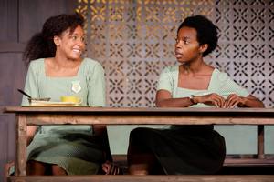 Set in a girl's boarding school in Ghana in 1986, on the surface School Girls is a simple story of two girls wrestling for control within a small group of friends, as well as vying for the chance to represent Ghana in an upcoming international beauty pageant. Paulina Sarpong (a deliciously fearsome MaameYaa Boafo) is the resident queen bee at the Aburi Girls Boarding School, where she rules her small circle of friends with caustic criticism and emotional blackmail. She doles out tough love with a smile but the girls resent her cruelty and chafe at her controlling manner. Paulina thinks she's got a slot in the upcoming Miss Ghana pageant all sewn up, but a beautiful, new girl, Ericka Boafo (a luminous Nabiyah Be) arrives two weeks late into the term and, without knowing it, immediately threatens Paulina's position in the school's social hierarchy. Their struggle to dominate and survive over 75 intermission-less minutes ultimately becomes a test of their character's ability to overcome familial dysfunction and emotional insecurities which are woven into the fabric of their day-to-day existence. Under the surface of School Girls, Bioh has written a taut exploration of racism, colorism and classism that upends notions of self-loathing and challenges the world's definition of beauty. Cleverly showing us the timelessness of these issues, Bioh subtly includes a subplot wherein the school's Headmistress Francis (a superb Myra Lucretia Taylor) is forced to tangle with her old nemesis at the school from twenty years earlier, Eloise Amponsah (the wonderfully under-stated Zainab Jah). Eloise appears at the school as the representative from the Ghana pageant, she herself having won the Miss Ghana title in 1966. But the lure of a promotion and salary increase if her candidate wins color Eloise's moral compass. It's clear from the Headmistress's seething she was a victim of Eloise's bullying twenty years ago, proving that nothing changes where school girl's abilities to inflect emotional distress is concerned. On a spare, utilitarian set by Arnulfo Maldonado and wearing spot-on costumes by Dede M. Ayite as well as wigs designed by Cookie Jordan, the excellent supporting cast includes: Paige Gilbert as Gifty and Mirirai Sithole as Mercy, cousins who keep each other out of trouble; Nike Kadri as Ama, a bookworm with an actual boyfriend; and Abena Mensah-Bonsu as Nana, a generous hearted girl with a warm smile who battles an addiction to food. They are the beating heart of School Girls and as they're jostled back and forth between Paulina and Ericka, you'll feel the heartache and unfairness of a callous world amidst the laughter and gaiety playwright Bioh so accurately captures.
