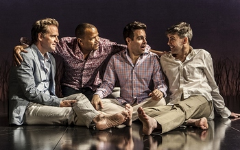The bit, however, makes a chillingly serious point even as it generates plenty of fun (and, just so you know, some light thematic spoilers). This languageand that's what it isis the sort spoken by those who view the illusion of the theatre as being more real than the real world in which they're all enmeshed. If there's nothing inherently wrong with that, it becomes dangerous when make-believe begins to replace the actual on a level above the Stephen Sondheim lyrics that constitute seemingly half of the characters' dialogue. You're having a great time while watching them having a great time, but what you're really observing is a group whose denial is poised to be shattered at the slightest upset. So it's not surprising that Gerrard wastes no time in showing us what happens in just such a case. At his birthday party, the fortysomething Steven (McGrath) is distracted by the recent discovery that his husband, Stephen (Gets), is not as faithful as he believed. After prying Stephen's smartphone from the hands of their 8-year-old son, Zachary, Steven found, ahem, explicit evidence that Stephen has communicating with Brian (Dixon) on a rather extramarital leveland both Brian and his partner, Matt (Cantone), are at dinner with Steven, Stephen, and their close friend (Carrie). What to do when one's existence comes crashing down in such a circumstance?