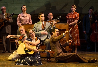 Case in point: Allegro, the 1947 musical by Richard Rodgers and Oscar Hammerstein II. Generally considered one of the first concept musicals, this follow-up to the team's blockbuster Oklahoma! and Carousel went big by going small, using minimalist but innovative staging and choreography (by Agnes De Mille) to explore the epic overtones in the utterly ordinary life of a small-town man thrust into the big-city whirl. It didn't completely work (I'd argue because of second-act trouble), but it fell well short of "smash" or "hit" status in part because it was too new for post–World War II audiences still adjusting to the new conventions Rodgers and Hammerstein ushered in. For his new production at Classic Stage Company, John Doyle has further pulled back this already pulled-back show. This approach should not shock longtime followers of Doyle's work; he's similarly treated all the musicals he's helmed to date in New York, from Sweeney Todd in 2005 to Passion at CSC last year. And many of the mechanics with which he's associated are here, in full force. Actors playing musical instruments, and seldom looking at each other while speaking. The abandonment of any and all subtext. The abrogation of feeling in line delivery, ostensibly intended to emphasize deeper psychological truths. The suppression of musical releases and applause breaks in pursuit of a continuous flow of action from beginning to end. These maneuvers have not traditionally succeeded, as they tend to disconnect the staging from the writing and set up a new theatrical dynamic through which the songs, scenes, and presentation are always out of sync (and frequently at war) with each other. This has resulted in everything from an isolating Company (a musical about romantic commitment) to a frigid Passion (take a guess). But there was some reason for even usual skeptics such as yours truly to believe that Doyle's strategy might fly with Allegro: The show is so weird, with its swirling Greek chorus, characters who sing more after they die than before, and bifurcated country-versus-metropolis plot, that bounding in from a radically different angle just might make the loose components cohere. That has, unfortunately, not happened. There's no way to obscure all the pleasures of the score, which if not Rodgers and Hammerstein's best is nonetheless a tuneful treat with the ballad "So Far," the romantic uptempo "You Are Never Away," the acerbic standard "The Gentlemen Is a Dope," and plenty of other cheerfully creamy filler. But Hammerstein's book stumbles in telling of the first 35 years in the life of rural doctor Joseph Taylor, Jr., from birth to professional independence, not least in its depictions of Joe's scheming, money-coveting wife Jenny, and the upwardly mobile existence into which Joe thrusts himself to make her happy. But for all its deficiencies, it does play when left alone and trusted, as the Off-Off-Broadway production earlier this year at the Astoria Performing Arts Center proved.