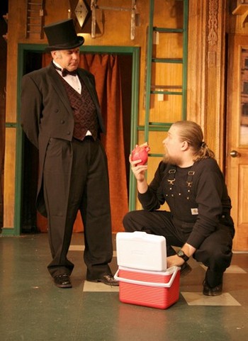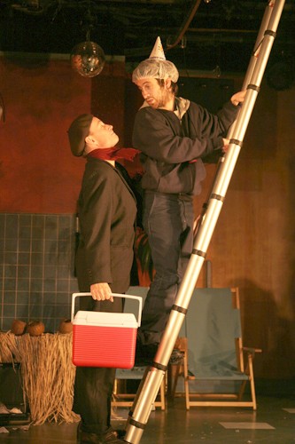A ladder to heaven. A poet who cannot feel. An aspiring businessman who traffics in human hearts. A money-minded, soul-bereft millionaire. There's even the requisite prostitute with a heart of gold who, in a daring twist, has a pimp with a heart of platinum. Not a single thing here is either what it appears to be or only what it appears to be, except for the script itself, which resembles and is an Adam Rapp play without the brutal creative imagination behind it. Two of this play's actors, Michael Chernus and Matthew Stadelmann, even appeared in the last Rattlestick production, which was (coincidentally?) Rapp's own American Sligo. That they're playing nearly identical characters here, and not nearly as well, is the least of the show's troubles. Far more damaging is that Rag and Bone is the laziest kind of theatrical writing, that which confuses meaning with content and ends up with none of either. Haidle faced a similar problem in his 2005 play Mr. Marmalade, in which a young girl warped by daytime television coped with a fantasy life far removed from the innocence we normally associate with childhood. Yet even in those bizarre surroundings, there were occasional moments of quiet and insight, when the dangers of trying to escape into an imaginary world were driven home with arresting clarity. Rag and Bone attempts to cover the same basic territory, but without possessing 10 consecutive seconds of dramatic or emotional honesty. As a result, its central sextet of woozy idealists resemble actual human beings in appearance only.