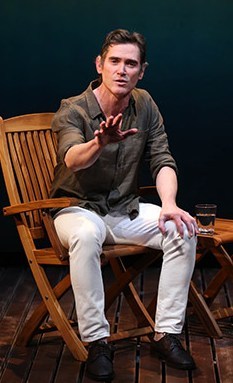 Making his debut at The Vineyard, as is the show's terrific director Leigh Silverman (Violet, Chinglish and Well), playwright Cale is known best as an Obie-winning solo performer, writer and actor who typically does his own material. He actually starred in an early draft of Harry Clarke at the Andy Warhol Museum in Pittsburgh back in 2013. It's an auspicious meeting of talents that finds Cale collaborating with Silverman, who has an unerring eye for small, subtle details, and they're both no doubt counting their lucky stars this staging at The Vineyard managed to snare an actor as gifted as Billy Crudup. A story of a troubled man living a double-life, Harry Clarke is good old-fashioned storytelling' at its finest. In discussing Harry Clarke one has to be careful not to say too much at the risk of divulging spoilers. In brief, Philip Brugglestein is a young man from Indiana who moves to New York City following the death of his parents and reinvents himself. As a child, Brugglestein had invented an alter ego named Harry Clarke, a cockney Londoner, whom he felt more at ease inhabiting that he did living as Philip Brugglestein. Upon arriving in New York, Philip feels the pull of Harry when, on a lark, he decides to follow a man one day "just to see where he goes." That man turns out to be a wealthy, Long Islander named Mark Schmidt and Philip finds himself completely taken over by Harry as his involvement with Mark and his family heats up. Cale incorporates elements of film noir is his script and there might be a temptation to compare Philip's assuming Harry's identity to Tom Ripley stepping into the person of Dickie Greenleaf in The Talented Mr. Ripley. But the character of Ripley in Patricia Highsmith's psychological thriller is actually very different than Cale's loveably, frightening sociopath. As Harry's involvement with the Schmidt family spins out of control, Crudup's performance sharpens with a laser-like intensity. He is riveting to watch, frozen in place on the stage for large stretches of the story, as he flips chameleon-like from one character to another. Silverman frames Crudup beautifully with a simple setting courtesy of Alexander Dodge and atmospheric lighting by Alan C. Edwards that changes the scene but never detracts from the momentum of the play. A deft examination of identity, personality and the ability to reinvent oneself at the drop of a hat, Harry Clarke and Billy Crudup will delight you and terrify you in equal measure.