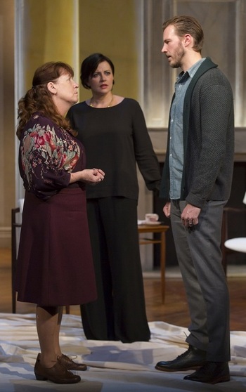 This is the astonishing, breath-stealing landscape that crowns the second scene of Naomi Wallace's play Night Is a Room, which just opened at the Pershing Square Signature Center in a Signature Theatre production. It's a wasteland of shattered souls so complete, so unforgiving, that your response isn't terror or revulsion, but in fact denial. "This is ridiculous," you may find saying to yourself (as I did), "this couldn't actually happen." But if it could or did happen, it's a safe bet that it would look a lot like what Wallace and her director, Bill Rauch, have accomplished here with the actors Dagmara Dominczyk, Ann Dowd, and Bill Heck. As for what, specifically, "this" is, it's perhaps best if we don't dwell on that. So severe, so shocking (not just within the boundaries Wallace has set, but objectively speaking) is it that to reveal too much about it would defuse its impact. So for now, let's just say that it's pretty much the ultimate nightmare one can conceive when the players involved are an approaching-elder woman (Doré, played by Dowd), her long-lost son Marcus (Heck), and his wife Liana (Dominczyk). Part of what makes it so terrible is that there should be nothing terrible about it. The lead-up is ordinary, even pedestrian. In the town of Leeds, England, Liana has spent years and a considerable sum of money trying to track down Doré. She was forced to give up Marcus for adoption 40 years earlier, mere moments after his birth, and has thus never been a part of his life. But, as her present to her husband for his big-four-oh birthday, Liana wants Doré and Marcus to come together, to get to know each other, and begin erasing the decades that have been lost to both of them. She gets her wish. Marcus meets Doré, and the two establish an immediate connectionso much, in fact, that they spend increasing amounts of time together, but always at Doré's unassuming flat and not Marcus and Liana's home. They eventually invite her over for an evening, and when she arrives, it doesn't take long for the picture to change wildly, and for Liana (and, to some extent, all of them) to learn the hard way that wishes can have unfortunate consequences when, against the odds, they come true. If the nature of the conflict that subsequently consumes the three has an air of improbability about it, Wallace and Rauch never let on. The scene morphs gradually but seamlessly between relevant feelings and attitudes, joking giving way to rage giving way to despair giving way to hope giving way to... well, you name it. It's an inordinately complex problem, precisely because it's so simple: Each character needs something so specific that the others cannot provide it without making what seems like an unreasonable sacrifice. And trying to communicate this in any useful way is, to understate the case, not easy. The actors handle the matter sublimely, with the chief accomplishment the thoroughness of the blinding contrast between Dominczyk's ebullient elegance and Dowd's no-nonsense manner. Because of their performers, Liana trades on being tall and statuesque and Doré on being short and dumpy. But their voices tell an even bigger story, with Dominczyk's musical phrasing of even the shortest sentences telling you who this woman is no less succinctly than the meat-and-potatoes drawl Dowd employs. And when circumstances require the two to tie new emotions to the pre-existing instruments, the disjointedness could not be more pronounced. Dominczyk and Dowd each have a number of fraught speeches, which they negotiate with a bitter conviction that commands your attention no less than the characters', and have so fully investigated these women that taking permanent sides with one or the other is not exactly possible. (Given the nature of what they're arguing about, that may be the theatrical achievement of the year.) Heck is quite good, too, particularly with respects to the subtle shifts of allegiances he effects in the caught-in-the-middle Marcus. But the role is functionary at best; the play could go on well enough without him (and does; Heck is required in only one of the three scenes). But if the combination of all the elements (including Rachel Hauck's apocalyptically barren sets, Clint Ramos's costumes, Jen Schriever's piercing lighting, and Leah Gelpe's sound) help ensure that Night Is a Room will be one of the year's most talked-about plays, in addition to likely the most disturbing seen at a mainstream New York venue, it can't maintain its power for its full two-hour running time. The final scene, set in the aftermath of the earlier explosions, stuns not because of the new boundaries it pushes but because of how conventional it is. If it technically follows from everything that comes before, it could also appear in almost any play with this same broad plot outline. What before bruised and lacerated now just nudges and scolds, as if searching for a way to convince us that the preposterous really is an everyday thing after all. It's notand that's what makes the earlier sections work so well. Wallace is subverting our expectations and tolerances, daring us to question and judge people who are being forced to endure unimaginable horrors while trying to live their lives the best way they know how. She's implicating us in their downfall, and forcing us to confront our own darker natures and predilection for moral posturing. Who's to say that any of us would react better in similar situations? Because Night Is a Room gives us so much to chew on, the easy-to-swallow ending is imbued with a bitter aftertaste that stops just short of ruining the five-course dinner that precedes it.