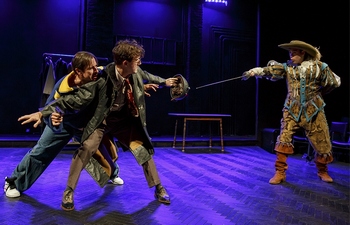 Where Jones has more trouble is integrating science fiction into all this. One expects some hand-waving over time-travel cap (nicknamed Caroline), but the death orbs appear to exist primarily so that the various characters can utter the word "balls" unironically over and over again. There's an obvious War of the Worlds tie-in here (Orson Welles's landmark broadcast premiered in 1938, just after the time frame of this play), but the underlying logic (yes, I used that word, and yes, it applies) is strained and, more surprisingly, not especially satisfying. And, against the odds, Jones runs low on fuel when Caroline becomes capable of visiting years other than 1998a development you'd think would inspire him rather than stymie him. For a playwright who is capable of getting so much mileage from the visual limitations of radio, the dress codes of police officers and detectives, and even simple pairs of jeans worn below the waist, one would think material like this would be an obvious "get." But no. If that's a signal that Jones is occasionally stretching himself too thin, the production itself never lets on. Director Moritz von Stuelpnagel has staged everything in a frothy frenzy that keeps the action hurtling between scenes and decades unobstructed, and never oversells the script's myriad gags; he's smart enough to know they can (and will) speak for themselves. There are too many moments of unqualified success to list (a wheeled door frame is utilized so frequently and so well that it's almost a character of its own), but a butterfly's protracted investigation of a temporal invader, extended across several blissful minutes of absolute silence, is a comedic show-stopper other productions this season will have to work overtime to top. (Behlmann deserves plaudits for pulling this off so effortlessly.) Timothy R. Mackabee's bits-and-pieces set helps von Stuelpnagel tremendously (the swirling time travel sequences are rendered with a sublime, perspective-skewing silliness), as do Jason Lyons's anything-for-a-laugh lighting. And special mention must be made of costume designer Jennifer Moeller, whose mélange of disparate styles could not better represent the conflict at the play's center (the ensemble she's devised for Saldivar in the final scenes, which combine all the fruits of his fashion filching, is drop-stitch hilarious). The cast, too, represents a heady blend of attitudes and approaches, with the focused lunacy of Elrod's Sam contrasting so well against the stony, stalwart Behlmann and Saldivar's lumpy-lackadaisical spin on Paul. Auberjonois's stuffed-shirt and stuffed-stomach academic is a hoot, as are the various pushed-aside women who are all played with deadpan grace by Maria Elena Ramirez. But there are so many roles and raucous opportunities that everyone is a standout at one point or another: For Reed Campbell it's a bemused detective wrapped up in the crazy case, for Triney Sandoval a brain-dead displaced father from the future, and for Jon Bass the angsty teenager who just can't keep his closet stocked. They all know that, substance-free as what they're saying and doing may beno one cares how Sam and Paul's ideological war plays out, given that we all know anywayhaving and making fun can often be its own reward. The play could be funnier still if it were even more tightly knitted, but what's the point in arguing too much? When the clothes fit and are right for the person, little else really matters. And in all the places where it counts most, Important Hats of the Twentieth Century is impeccably tailored.