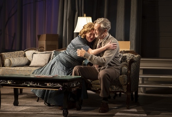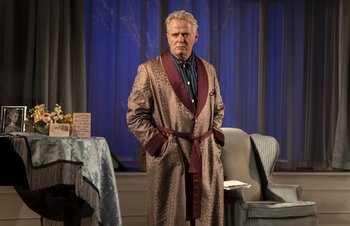 The Young Man from Atlanta begins in the office of Will Kidder (Aidan Quinn), a regional sales manager for a large wholesale grocery business. He has recently purchased a large and expensive home, and he has put a down payment on a new car for his wife Lily Dale (Kristine Nielsen). The audience also learns that just six months before, the Kidders' son Bill drowned in an apparent suicide, but Will keeps his grief at bay. His life is suddenly upturned again, though, when he is fired from his job after nearly forty years with the company. Lily Dale is having a much more difficult time dealing with their son's death, but she manages to putter around the house and keep up appearances. Previously, Lily Dale had devoted her attention and energy to music, but now she concentrates almost obsessively on religion. Still, she assumes the role of the ideal housewife, catering to her husband's needs and supervising the housework and full-time maid. Adding to the emotional and financial turmoil is Randy Carter, a certain young man from Atlanta who was Bill's roommate. He does not appear in the play, but Randy is a mysterious figure. He has come to Houston hoping to get a job in Will's company, and Lily Dale has secretly given him thousands and thousands of dollars. Will deeply distrusts Randy, but Lily Dale finds solace in their presumably shared grief over Bill's death. Taking place in 1950, the play presents a conservative portrait of the United States in a pre-Civil Rights and pre-Stonewall era. African Americans in Lily Dale's social circle work almost exclusively in menial positions, and she articulates her own distrust of liberal politics. Lily Dale fixates, for instance, on the supposed "Disappointment Clubs" of the early 1940s. Also referred to as "Eleanor Clubs," these supposed organized protests were rumored to have been Eleanor Roosevelt's plot to disrupt the lives of Southern whites by encouraging black domestics to not show up for work. More pointedly, The Young Man from Atlanta suggests that the relationship between Bill and Randy was more intimate than the characters can admit. They cannot even put a name on it, but Will mentions that at his son's funeral, "Randy got hysterical and cried more than my wife." In fact, there is a lot that goes unspoken. Foote shows the lengths people will go in order to hear what they want to hear. With direction by Michael Wilson, the cast is uniformly strong, and they keep the audience guessing about the uncomfortable truths. Answers about Bill's death, the relationship between Bill and Randy, and the motives of Randy are constantly shifting. Unlike Foote's best plays, however, which offer quieter ruminations of characters facing a transforming zeitgeist, The Young Man from Atlanta feels somewhat mechanical. The exposition is a bit heavy handed, and the appearance of particular characters (including a former maid, portrayed by the excellent Pat Bowie, as well as the arrival of an acquaintance of Bill and Randy) rings as rather too coincidental. Still, the performances express the underlying sadness, trepidation, and anxiousness associated with living in a capricious universe. The production is up to Signature's usual high standards. Jeff Cowie's set design is appropriately sterile and museum-like (but with a central courtyard, it is somewhat confusing in the layout of the off-stage rooms). Van Broughton Ramsey's costumes are period and class specific, and David Lander's sunny lighting contrasts with the dark truths the characters wish to keep hidden.
