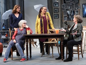 Through thick and thin, four women with a shared history going back four decades gather annually at the loft apartment (perfectly rendered through Beowulf Boritt's set design) of one of their number, Danny (Polly Draper). Danny is a professional photographer who has been taking group portraits of the other three without fail ever since they first met in jail when all of them were arrested at a protest. ("Well, it was the seventies," Danny explains during her TED Talk that serves as a frame for the show). For all these years, the photos were shared only among the group, but now Danny wants to display them as part of a retrospective exhibit of her work planned for New York's Museum of Modern Art. Amid the annual catching-up and sharing of food and drink, this unexpected twist on their collective privacy lingers in the air. Will the women sign the legal releases that will allow the many years of images marking the not-always-kind progression of time to be put out there for strangers to see? One who is most resistant to the idea is Sil (Ellen Parker), a real estate broker who is struggling to survive in a highly competitive and ageist work environment. The others start to tease her because is about to undergo a facelift, until she reveals how financially difficult things have been for her ever since a messy divorce. For Sil, "just seeing the photograph from that year puts me back there. Only it's not a place I want to be." All four women, who are in their 60s, are surprised at how the swiftly flying years have caught them off guard. Mac (Franchelle Stewart Dorn), who has had to fight all of her life as an African American woman, a lesbian, and a player in the man's world of professional journalism, puts it most succinctly: "One day I'm dancing all over the house in my little bikini underpants and socks. And then, sometime in the middle of the afternoon, it happens. Just like that. I'm old." The fourth member of the group is the perpetual optimist, Gabby (Kathryn Grody). Invariably kind to everyone, she is a veterinarian who is available to take calls about her beloved animals at any time. She is also quirky and quite funny, even though she has had to deal with breast cancer and is so afraid of outliving her still-quite-healthy husband that she has taken to staying by herself at a hotel because she is "in training for widowhood." One of the real strengths of the play is how the playwright allows each of the women the time and space to tell her own story. There is some tension in the room regarding the proposed exhibition, but more significant is the deeply entrenched well of trust, love and support among the group. What they share is more than friendship; it is their collective memory and experiences as part of their boomer cohort. They are, as Danny puts it, "my timetables of history." Perhaps 20th Century Blues is a bit overstuffed with plot, especially with the additional appearances of Danny's darling mother (Beth Dixon), who suffers from dementia, and Danny's adopted son (Charles Socarides), who has been searching for his biological mother. Yet the writing and the performances under Emily Mann's warm direction are so strong that only a real curmudgeon would quibble. There simply is not a misstep in the entire evening, and you are likely to leave the theater deeply moved by the experience, whether are not you count yourself among those of a "certain age" when you most treasure your time with those nearest and dearest to you.