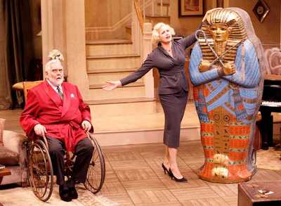The same is frequently said of George S. Kaufman and Moss Hart's classic 1939 comedy itself, but that's never a given. True, the playwrights based their story, about entertainment raconteur Sheridan Whiteside being cooped up in the Masalia, Ohio, home of Ernest and June Stanley and terrorizing his hosts for two weeks, on the larger-than-life critic Alexander Woollcott. And he, like the sources for many of the subsidiary above-the-marquee misfits with whom Whiteside associates, which include Noel Coward, Gertrude Lawrence, and Harpo Marx, are not always well remembered today. But because each represents a timeless typethe full-of-himself bull, the elegant bon vivant, the man-hungry megastar, and so onit takes only gentle prodding to make them all palatable, even delectable, to modern tastes. Unfortunately, each rolewhether the spangled show-biz folk or the Masalia hangers-on so floored by Whiteside's on-the-pulse destructivenessalso requires a big personality, and director Dan Wackerman and his company have provided far too few of those. When the roles are played either strictly naturalistically or as clowns in disguise, theoretically bulletproof parts crumple into lifelessness. And with only a few exceptions, that's exactly what happens here. It starts at the top, too. As Jim Brochu plays him, Whiteside is desperate to be liked, forever cooing and playing with those under him (which he thinks is just about everyone), rather than either running rampant over them or seizing on their dreams for his own edification. He's not playful in the traditional sense, and he's not condescendinghe's too Important-with-a-Capital-I for that. Yet Brochu oozes both these qualities, highlighting the tiniest notes of Whiteside's childishness but none of the tendencies to roar or maul that make him a magnetic monster to the simpler folk he encounters. For a man who's an existential threat to small-town order, Brochu's Whiteside is disquietingly quiet and nice; Whiteside isn't supposed to be a human, so treating him as one doesn't work. Nor does portraying ravenous theatrical it girl Lorraine Sheldon as a sympathetic soul who enjoys a good date on Saturday night. The script describes her as "glamorous," someone who "glitters as she walks," and indeed, the character must project larger-than-life appetites for both drama and men: She must believably romance English aristocracy and a rural newspaperman at the same time, and be prone to effect Joan of Arc poses at the opening of a yawning sarcophagus. Cady Huffman speaks with an alluring, velvety purr, but conveys minimal worldly verve at best; in Amy Pedigo-Otto's unimaginative costumes, she resembles a homemaker whose idea of a visit to the continent is dressing up for a night at an Italian restaurant. Joseph R. Sicari doesn't quite hit all his Marx as the rambunctious Banjo, and stops barely short of making him a leery old man instead of an irrepressible free spirit, though he's endearing enough to communicate the basic idea. The same can't be said of either Amy Landon, who's too much steel and not enough softness as Whiteside's secretary, Maggie, or Jay Stratton, who is too bulging-eyed hyperactive as the local reporter she falls for (to Whiteside's consternation). More problems crop up with Ira Denmark, whose begins Ernest's outrage at full boil, and has nowhere to go later; Tony Triano as the opportunistic doctor-cum-playwright who's treating Whiteside; and especially Kristine Nevins, who so telegraphs Nurse Preen's exasperation with Whiteside's scorn that her traditionally show-stopping third-act monologue repudiating him disintegrates prior to impact. The few performers who find the right style are mostly lost in smaller roles. Thursday Farrar is sparkly as the maid, Sarah, and suggests a hopeful interior life you accept Whiteside could and would cultivate. Scott Evans and Jenna Gavigan unlock the proper skyward-looking innocence needed for the two Stanley children. And John Windsor-Cunningham is an absolute delight in his tragically short scene as British bon vivant Beverly Carlton, blending stiffness with sumptuousness in a way that far more people onstage should be doing. Wackerman's staging is adequate on Harry Feiner's airy living-room set, though the action's pacing is too erratic to prime the atmosphere for the humor that should come easily. As with Wackerman's arid production of Room Service several seasons back, some performers so strain for laughs (particularly Brochu, Nevins, and Kristin Griffith as Ernest's secretive sister) that they end up more tragic than funny. Trying too hard is among the easiest of ways to deflate Kaufman-and-Hart effervescence, as this version of The Man Who Came to Dinner demonstrates, but that's a symptom rather than a sickness. If salt and pepper were more plentiful, maybe the actors wouldn't be struggling as much to bring out the entrée's basic flavors?