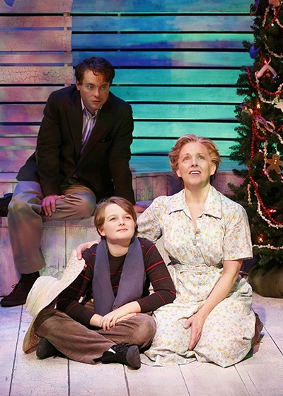 This is the general atmosphere of the musical adaptation of A Christmas Memory that just opened at the DR2 Theatre under the auspices of the Irish Repertory Theatre. Duane Poole (book), Larry Grossman (music), and Carol Hall (lyrics) have dug into Truman Capote's 1956 short story in an apparent attempt to craft a different kind of holiday musical: one that trades more on Capote's Southern Americana than the traditional elements (ice, snow, Santa) we've come to expect. But by going too far in some respects and not far enough in others, they've produced a weird hybrid that's neither moving nor especially evocative of the era and locale in which it's ostensibly set. For the most part, that's Alabama 1933, where a nine-year-old named Buddy enjoys a typical yuletide with the much-older cousins he lives with: Seabon, Jennie, and Sook, the last of whom Buddy has formed a particularly close bond with. Sook, the oldest of the trio, flies kites with Buddy, works with him to make the drunken fruitcake she sends to friends, acquaintances, and even complete strangers (Franklin and Eleanor Roosevelt are among this year's recipients), and generally treats him like a kind, creative soul rather than an unruly boy who needs to be managed. (It's hardly a secret that Jennie plans to send Buddy off to military school as soon as the New Year hits.) Following the original story, the musical covers little more narrative ground than this, though it also uses an adult Buddy stationed in 1955dressed up by costume designer David Toser to be the spitting image of the mature Capote, round glasses and allto reflect back on this unusually significant Christmas. The authors have not skimped on presenting the kind of simple pleasures that gave Capote's memoir its nutmeg-infused aura of home, such as storytelling sessions, family sing-alongs, and tree decorating, and these ensure that a certain friendly spirit is maintained throughout. And James Noone's set, a country home and yard as filtered through 20 years of wispy nostalgia, summons the proper coordinating feel, as do Brian Nason's lights. None of it is ever exactly transporting, however. Poole's book is slow and long-winded, borrowing liberally from Capote without capturing much of his magic. The score is riddled with desperate would-be showstoppers that thrust entertainment in your face like a sloshed uncle trying to push leftover eggnog: a vaudevillian salute to the fruitcakes, a paean to the unexpected life by the family's black housekeeper Anna, and an endless (and annoying) made-up tale for Buddy after he visits a mysterious bootlegger's house. But even the more honest numbers tend to check off boxes ("the mean cousin's not so mean," Sook and Buddy's last day together, and so on) rather than grow organically from the feeling of the moment. It doesn't help that Grossman's music, though handsome and sufficiently warm, is also dull and melancholy, playing too deep in the older Buddy's recollection for you to ever get completely lost in the bygone moments he does. Hall (The Best Little Whorehouse in Texas) skirts the edges of emotion in most of her lyrics, but her wittier style does not mesh seamlessly with what's required here. (One typical lyric: "Paper and cotton and scissors and twine / All that we had to give Christmas a shine." Another: "Heaven is not just a shiny star / Heaven is things just as they are.") Charlotte Moore's direction fits right in: honest but ponderous, when a lighter touch would be much more beneficial. Heavy sells are what you get from the actors, too. Only Virginia Ann Woodruff, as Anna, finding a levity within all the suffused sadness, though a close second comes from Taylor Richardson, the spunky young actress who plays the precocious, tomboyish next-door neighbor, Nelle. Ashley Robinson channels Capote well enough, but projects little personality of his own; while Nancy Hess and Samuel Cohen, as the mean cousins, strain against the tight confines of their thankless roles. Silvano Spagnuolo pushes unbearably hard as the young Buddy, shouting many of his lines, mugging through practically every scene, and displaying little of the good-hearted appeal that should endear the character to Sook or to us. As for Sook, Alice Ripley imbues her with a gentle sauciness that projects the welcoming vibe of a Southern-spun Auntie Mame. But Ripley plays her very young and energetic, which not only hurts Sook's relationship with Buddy but renders her final fate (which is dependent on her agedness) nonsense. And her singing voice, which in its present state alternates haphazardly between earthy belt and untethered mix, sounds utterly wrong for a woman we, like Buddy, are really supposed to love. Like everything else here, Ripley's Sook suggests a sepia-tinged description of someone we might want to know, but without the details needed to make her come to life. Perhaps part of the point of this take on Capote is that the past is never quite the way remembered it, and we're forever filling in the gaps we find with what we've come to learn in the interim. But because there's no real evidence of that, this A Christmas Memory is compelling only for its promise, not for what it actually delivers.