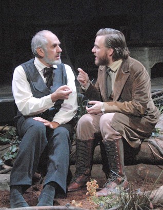 Scrupulously avoiding both controversy and conflict, it never treats the conclusions of Charles Darwin as anything but an open-and-shut case. Some lip service is paid to evolution's being the silver knife that forever killed God - and Darwin's wife Emma and devout (and dying) daughter Annie are none too happy about it - but what really matters here isn't what the Theory of Evolution says, but who said it first. Was it Darwin (Michael Cristofer), who's been sitting on his monumental discovery for some two decades, afraid to publish for fear of the religious implications? Or was it Alfred Russel Wallace (Manoel Felciano), the young upstart who independently devised the same idea, and wrote to Darwin about it - mysteriously, only a year or so before Darwin's masterwork, On the Origin of Species, was first published? As Parnell presents it, the question is not likely to drive you to the edge of your seat. Darwin, facing pressure from Emma (Bianca Amato) and Annie (Paris Rose Yates), is a typical tortured hero whose choice about releasing his research is a foregone conclusion. When Wallace appears, he's so understated and amiable that you have little reason to fear he'll smash either Darwin's emotional or professional house of cards. With the first act devoted to Darwin fretting over whether to go public with his findings and the second devoted to him fretting over having gone public, Trumpery frequently resembles the fossil record's missing link between historical dramas and a therapist's couch. A small gaggle of attendant characters, including the older (Bianca Amato) and younger (Paris Rose Yates) Darwin women, Darwin's supportive friend Joseph Dalton Hooker (Michael Countryman), a Bible-thumping paleontologist (Peter Maloney), and the token skeptic ripe for conversion Thomas Henry Huxley (Neal Huff) add bulk, if little substance, to the central issue. With so many characters agreeing about the underlying precepts of Darwin's work, and those that don't (such as Maloney's character, Owen) earning light ridicule, this is more mutual admiration society than play. David Esbjornson's production, placed amid the lush garden set of Santo Loquasto and robed in Jane Greenwood's reserved period finery, only blows more dust into atmosphere already as musty as it is genial. The acting, like everything else, is handsome: The unfettered concern Cristofer brings to the world around him makes his Darwin a reassuringly humanistic figure caught in an uncomfortable situation, Felciano's sweet manner nicely contrasts with Wallace's dragon-master preconceptions, and Huff derives some droll comedy from Huxley's high-speed head turning. But no one reveals any surprising facets in the people we already know, or gives us reason to believe any are to be found in those we don't. The story we've never heard is more important to Parnell than actually telling a story in the here and now. It provides an interesting comparison with another just-opened non-mystery mystery play, Aaron Sorkin's The Farnsworth Invention: Two adversaries in pursuit of the same vision (in that case, tele) must struggle to inform us of their accomplishments through the path of most insistence. If Parnell's is the better, smarter play, it's weaker theatre - Sorkin strives to make his enlightenment entertaining, while Parnell trusts that enlightenment itself should be enough. It's not. That Parnell never convinces us this is a story dying to be told suggests that his dramatic design was perhaps too intelligent for Trumpery's own good.
