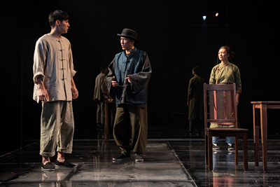 If you have seen Suh's earlier play, The Chinese Lady, you may come to The Far Country expecting an evening in which history comes wrapped in witty satire and the interplay between its intriguing characters. But, for better or worse, what you get is perfunctory characters and stilted dialog wrapped in a history lesson. This is true despite the best efforts of its cast, which includes the always-enjoyable Shannon Tyo, who dominates the second act in a role that, unfortunately, is also sketchily developed. The play bills itself as "an intimate epic," and, I suppose that's a pretty good description of its intentions. It opens with a lengthy interrogation scene, interesting in its own right as a kind of documentary theater. Han Sang Gee (Jinn S. Kim) is there of his own accord to gain official affirmation of U.S. citizenship. He is one of many Chinese men living in the San Francisco area who claim to have been born in this country, alleging that their documentation was destroyed in that city's 1906 earthquake. The questioning is lengthy and arduous, but Gee is well prepared with details of his life, occasionally aided by his interpreter (Whit K. Lee), who feeds him a few subtle hints about how to proceed. It is the tiny details of the procedure, including periodic racist remarks casually tossed off by the otherwise by-the-book lead interrogator (Christopher Liam Moore) that make this a riveting way to enter into the play. Eventually, the interrogation ends, and while we are not entirely certain of the final decision, the next time we see Gee, he is in China, meeting up with someone from the village where he actually grew up, a woman named Low (Amy Kim Waschke). He tells her he is an American citizen, and that he is there to take her teenage son Moon Gyet (Eric Yang) back with him. Gee will pass him off as his own son and put him to work in his laundry, where the boy will be an indentured servant for many years. Given the harshness of life in the village, both Low and Moon Gyet agree to the plan in the hopes of a better future for the young man than he will ever have in China. The Far Country continues in this fashion, with separate scenes about those who are caught between a rock and a hard place. Living in near anonymity, they are forced to consider every moment how to deal with their limited choices, either by accepting the dead-end brutality of rural village life, or by risking the harshness of life in America, a place where they are constantly reminded that they are not wanted and which may deport them at any moment. Leap forward in your mind to the present day and this country's current immigration policies and practices, and it is clear this is a story that has many faces and languages that continue to challenge Emma Lazarus's words. As for the particular story being told in The Far Country, many years pass before Moon Gyet returns home for a short visit and, in a variation on the theme, repeats the scenario that led him to give up his own identity as a teenage boy. Thus, Yuen, Shannon Tyo's character, becomes part of the seemingly never-ending cycle. Throughout the production, it appears that the playwright and director Eric Ting are pushing the boundaries of what it means to invite an audience to connect with the content. If you want to get something out of the experience, they seem to be telling us, you'd better be paying careful attention. Our "intimate epic" offers up a significant piece of history that you probably know next to nothing about. Listen, learn, and digest it all later. The Far Country