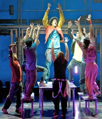 Conceived by Danny Cistone (who also directed) and Bradley Rapier in collaboration with the cast, the 90-minute flaming-footwork festival celebrates both the art and the heart of street dance as filtered through its front-line interpreters. Its 10 primary cast members relate how the art beckoned, and encouraged them to express themselves in the moment rather than waiting for someone else to feed them steps. And, of course, they demonstrate their evolution to (or succumbing to) this state of motion-centricity. In those ways, Groovaloo Freestyle often plays and sounds like an uninhibited, urbanized A Chorus Line. In others, not so much. Its explorations of poverty, parents who didn't understand, and the specters of personal and societal expectations are so generic, in fact, that you'll remember only the more vivid departures from the norm. Rapier was on track to become a doctor, but knew one day in an operating theater that the medical life was not for him. Al Star (Kendra Andrews) was classically instructed and disciplined, but inept at freestyling her first dozen times out. The most moving tale is that of BoogieMan (Steven Stanton), who was shot one night at a club and told he would never walk - let alone dance - again. The cane he uses for much of the evening underscores this, but - well, won't he probably shed it eventually? Their stories all take on considerably more distinction once they actively kick up their heels - and most other imaginable body parts - to show that they practice what they preach. Numbers about the harrowing natures of auditions, living up to a father's dreams (as represented in a challenge-tap mirror number), and making a warehouse lunch break far more musical than it has any right to be, are young, unpolished ideas. But they're shiningly executed, and more than sufficient showcases for the undeniably talented cast to work out their coruscating kinetic vision of how to overcome life's little obstacles. So dynamic are they, you wish the stereotypically graffiti-strewn set (Laura Fine Hawkes was the design consultant, Toons One the painter) and headache-inducing lighting (Charlie Morrison) represented as original a vision. Particularly effective is the climactic number, "The Circle," in which the ensemble-prone company finally gathers to strut their stuff for their compatriots. It's where, for them, the magic is made - it's where Rapier sheds the shackles of the healing industry he never wanted to join, Al Star transcends her training to speak from her own soul, and BoogieMan meets his destiny (in more ways than one). It's also where the lesser-represented performers get chances to dazzle, with some whose angular moves openly repudiate gravity and one young man who spins on his head - perfectly, as far as I could tell - for the better part of 30 seconds. It's all astonishing, no doubt. But is it beautiful? In terms of its outward appearance, not really. The kids' connections to their souls, however, are as attractive as they can be, and are what make the best case for Groovaloo Freestyle as both a labor of love and a work of worthy - and often energizing - theatre.
