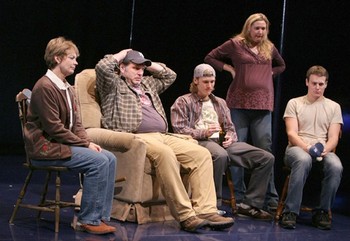 In plays as diverse as Prelude to a Kiss, Reckless, and Small Tragedy, Lucas has investigated that uniquely human tendency to encounter - and in many cases even seek out - tragic uncertainty. He returns to that territory here, offering a dynamically theatrical look at how our stated and secret desires are affected by the prevailing winds of fortune. Not sure whether either Billy (Jonathan Groff) and/or his friend Tad (Zachary Booth) is gay? Just wait a few scenes to learn why that question is so inconsequential. No clue who the spiritedly whiny Dolores (Victoria Clark) is, and what her musings about her husband, her dead mother, and New York's all-consuming messiness have to do with anything? Sooner or later all the stars will align, bringing with them the expected glorious skyscapes and terrifying black holes. If it all sounds somewhat vague, it is - and that's the point. Lucas discourages backward glances, or really introspection of any kind, as the methods we use to prevent ourselves from noticing what's in front of us: Spend too much time seeing and you won't spend enough time being. The events that make us what we are can't always be pinpointed; sometimes the daisy chain of events that creates us is invisible. When that's the case, as it is for the six characters here, the answer isn't to live according to a fixed set of rules but merely to live. So Prayer for My Enemy is one of those plays that should only be examined whole - dissecting the individual pieces will only encourage your drowning in its stream of consciousness. Each of Lucas's individual scenes or approaches to scenes looks at the tangle of situations in a different way: some are strictly naturalistic, others philosophical or fantastical, still others internally probing along the line of Eugene O'Neill's Strange Interlude (complete with spoken asides). Regardless what the style is, you might sometimes feel overwhelmed with information: Billy's dad Austin (Skipp Sudduth) is a recovering alcoholic with a penchant for nature documentaries, while his older sister Marianne (Cassie Beck) is the love-deprived mother of an autistic child, and his mother Karen (Michele Pawk) is a soft-spoken enabler who survives only by losing herself in other people.