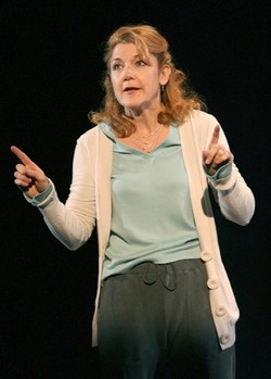 By the time that finale arrives, what had started off scattered, almost confused, turns profound and reminds us that the formation and dissolution of relationships and friendships, births, deaths, and everything in between, all mark a moment in history that will never come again - and will affect future moments in ways we can't begin to predict. The only thing needed to keep the goals in focus is a director who recognizes and can impart a sense of grand cosmic urgency, and Bartlett Sher - who's proven fairly adept at doing this in the more intimate emotional settings of the revivals of Awake and Sing! and South Pacific, and in the new musical The Light in the Piazza (for which Lucas wrote the libretto) - is more than up to the challenge. He presents the characters as moons in precipitous orbits, always under the control of an otherworldly force such as "God," "gravity," or something else entirely. But his staging, often limited to small groupings confined within the tight pools of Stephen Strawbridge's lighting design, and the actors' portrayals keep everything appropriately earthbound. It has to help when the actors are talented and gripping as these: Clark is a treasure as the dotty, melancholy-caked Dolores, Pawk a captivating mistress of caressing silences and building resentments and fears into geyser-like bursts, and Groff and Sudduth appealing visions of personal untetheredness separated by a couple of decades. As with the script itself, however, each performance means more as a function of all the others. Pawk and Clark become more vivid because of their contrast with each other, Sudduth and Booth represent two wildly different influences in Billy's still-forming adulthood, and so on. The cast and Sher all understand what Lucas has made implicit: everything is important, because everything makes a contribution - in both life and theatre. It's to the considerable credit of everyone involved in Prayer for My Enemy that it's impossible to distinguish between the two.