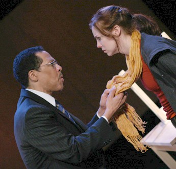 For this play does not look, sound, or behave like any other Greek tragedy some director has callously "updated" with modern accoutrements, obscuring with a layer of dust the latent meaning two dozen centuries couldn't hide. It is, for all intents and purposes, a new work with a historical basis. In its rigorous rethinking of everything that composes its story, it recalls Charles Mee's own Greek revampings, even going so far as to incorporate excerpts from famous folk as diverse as Richard Nixon, Peter Brook, and Susan Sontag. If this list - plus Gibson's "here and now" minimalistic direction and Moran's omnipresence as an alienation inducing narrator oddly called "Chorus" - reeks of pretension, the rest of the play could not be freer of it. The trials of Antigone (an intense Laura Heisler), her sister Ismene (Aria Alpert), their uncle Creon (Peter Jay Fernandez) and the others populating a political hotspot simmering somewhere between Ancient Thebes and modern-day Washington, D.C., could easily have been ripped from yesterday's gossip blogs, with only the names changed to protect the guilty. There's no world-class emoting, no speechifying, no deus ex machina - just the real-seeming troubles of real-seeming people in a world that's hopefully too real to actually exist. Children struggle to escape their parents' shadows, a trophy wife (Creon's own, Eurydice, played with a stony, Cindy McCain stateliness by Wendy vanden Heuvel) frets over increasingly diminished role in public and personal discourse, and soldiers sworn to obey their commander-in-chief (Jamel Rodriguez, MacLeod Andrews, and Ray Anthony Thomas) chafe against their own roles in the war between law and disorder. It all derives directly from the Greek original, but with scenes reenvisioned as shadowy backroom deals or committee hearings, a harrowing Guantanamo Bay-style torture scene, and even laptops and cell phones playing crucial roles in the plot, it never feels like it. The play's multimedia, clash-of-cultures leanings might have been ideal for the Fringe Festival (where it premiered this past summer), but it never feels that Reddin and Gibson are stretching - and it almost never feels inauthentic. The exception is during the exposition: It's less believable in our world than in Sophocles's that Creon would make a political statement by refusing to bury Antigone and Ismene's dead brother Polynices, the event on which the rest of the action turns. But excepting this, the rebellious Antigone's antagonism with the might-makes-right Creon and her fraught affair with his son Haemon (an undefined Seth Numrich), stripped of its stuffy cotton coating and instead plated in steel, makes for a deeply incisive 65 minutes of theatre. None of the performers displays quite the weight you'd undoubtedly experience watching a traditional interpretation of Antigone, which is to their benefit: This forces you to view everyone as a human divorced of the influence of the Gods, operating under their own accord for the good - or ill - of all. Heisler is remarkable, so fiery and defiant in her repudiation of Creon's self-absorbed policies, you can easily envision her leading a whole revolution by herself; she wields microphones like weapons, cell phones as holy objects, and wears her own fortitude as a second skin. Alpert is more reserved, but delicately skates on a thin sheet of pain that doesn't completely crack until the play's climax - a wonderful moment. Most interesting, however, is Fernandez's Creon. Deceptively imposing yet outwardly gentle and fielding a threatening baritone, he's the model of respectable evil. Yet you never believe his legislation of religion or morality comes from anywhere but an innermost core of sincerity: Like the most fiendish of political monsters, he commits the most heinous acts for the most understandable of reasons. His plight is perhaps the most applicable to our own times, with one president roundly accused of similar actions and another promising a new direction but possessing no proof of his ability to deliver it - it surely can't be a coincidence that though Fernandez's Creon echoes George W. Bush in actions but Barack Obama in appearance and voice. Politics, like theatre, hasn't changed much in the last 2,500 years, but Too Much Memory gives both an invigorating new spin.