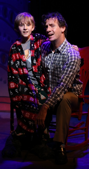 And what follows is . . . mild. Not incompetent, not offensive, just dutifully clacking along a well-worn track like something out of the BMI Musical Theatre Workshop, where Apple, in fact, studied and missing a few stations along the way. Idiosyncrasy is scarce, and that begins with our hero, Richard (Scott Ahearn). He's a single dad (what happened to Mom is never explained really, Mr. Apple, not one little line of dialogue?), and he's been called in for a parent-teacher conference about his eight-year-old son, Davin (a winning Elijah Rayman, who comes off as a real kid, not a calculating kid actor). Davin's behavior has been strange, though the next song uses a much stronger word than strange. It's the first of many numbers that, rather than forwarding action or amplifying emotion, just restate one thought in multiple ways. Davin's teacher (Donna English, splendid in several roles), invoking the f-word over and over, is in itself supposed to be hilarious. Anyhow, Davin has ingested the fruitcake from hell and landed in the ICU. Oh, and Richard is telling all this in flashback to Detective Zanderhoff (Dathan B. Williams), who's been called in for some unaccountable reason to help resolve Davin's sudden fondness for pitchforks and frequent invocations of "Reg-nok ka varabock za," which translates as "He who sets foot in my realm is mine." Davin lies unconscious, misses Christmas a good number comes with his recovery, "Somebody Owes Me a Christmas" and gets swept up in a diabolical mixup at the hospital, involving one of the unlikelier personages ever to emerge in a musical comedy plot, Charles Manson. For reasons not compelling enough to explain, Davin winds up in the underworld, where Lucifer (Brandon Williams) wants to replace Richard as his father, and Richard has to venture there to battle with the devil for custody of his son. That means gaining otherworldly passage with the assistance of Galiana (Lori Hammel), a garishly costumed spirit who's inhabited both worlds, and who loves Carl (Zak Risinger), a devil's underling whose hands are too big, and who gets a whole pointless song about that. Does this sound fun? It could be, maybe. But Richard, in Ahearn's straightforward portrayal, hasn't much of a personality. Nor, surprisingly, does Lucifer he's just a leather-clad bureaucrat, nowhere near as menacing as, say, Mr. Applegate from Damn Yankees. Their final square-off, with Richard articulating the paternal love that no other force can match, is an eleven-o'clock-number moment if there ever was one, but "More Than Cheese" has as little impact as its title suggests. The other characters an officious principal, a central-casting Irish priest (both Ron Wisniski, struggling with the Hibernian accent), a dumb cop, God don't make huge impressions. The ripe comic possibilities inherent in who's in hell, who's not, and why they're there or not are minimally exploited, though you'll be glad to know that an afterlife Leona Helmsley makes a killer mac and cheese. The songs, often in suitable minor keys to reflect the diabolical surroundings, are neat enough if sloppily rhymed, and you'll probably appreciate the finale, which suggests that Hades and an overlong Christmas season are the same thing. It's a score that skates the surface, though, never plunging deep into anyone's feelings or motivations. And Bill Castellino, who did such a terrific job directing Desperate Measures at the York last season, seems off his game here: There are dialogue pauses you could drive an SUV through, and the choreography's barely there. Tyler M. Holland's costumes have some sparkle, and the busiest design person may be Kenneth Griffin, who never met a wig he, or we, didn't like. I hope Apple keeps trying with musicals: He knows how to lay one out, and while there's little in the way of satire here, he's good at poking fun at modern annoyances, like Home Depot and Chuck E. Cheese. As we traverse hell, heaven, and some nonspecific suburbia that could use more definition, we enjoy the occasional good joke and applaud the hardworking cast. But Christmas in Hell is seldom able to mask the harsh reality: Hell, it turns out, is a rather bland place.