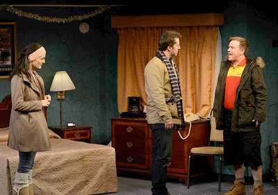 There's one exception. The action is split between December 24 and the day before, when Ayelet and her grandmother, Edna, arrived at the motel. But everything that happens on the 23rd is eye-poppingly extraneous, conveying little we can't interpret (or even just hear) from Ayelet, and filling out the background (Edna was a Russian Jew who fell in love with a man named Simon she couldn't marry; Simon moved to America and she's been searching for him ever since her husband died) that serves, to be charitable, minute dramatic purpose on its own terms. The main thing these scenes accomplish is establish a nice opportunity for a star turn from Carol Lawrence. The original Maria in West Side Story, one of the once-upon-a-skyrocket stars of New Faces of 1952, and inhabitor of countless other stage and screen roles, Lawrence remains an energetic and adventurous presence who brings a vibrancy and vivacity to the character while keeping a bit of melancholy in reserve for the obligatory Act II moments that demand it. It's just that nothing demands they occur in the first place. Williams's flipping between the days also has the deleterious effect of defusing any of the comic momentum he's apparently trying to generate. You sense the playwright is aiming for big, two-way fish-out-of-water laughs, and trapping Ayelet, Josh, and Terrence in a hotel room under these circumstances could indeed lead to a rip-roaring farce with the proper execution. But with the body essentially a MacGuffin (spoiler alert: It's found as effortlessly as it's lost) and Edna so deeply humanized, there's neither the time nor the inclination for the hilarity to escalatesimple jokes, simple sweetness, and thus a simple evening are all you get. There's nothing wrong with that, of course, provided that's all the playwright was going for. But Williams forever seems to be trying to go further and stumbling over his own premise along the way. Maybe Handle With Care would have achieved more lofty goals had Williams, well, handled it with a bit less care and a bit more craziness? Regardless, he's turned out a perfect, and perfectly forgettable, holiday show: a frothy mug of non-alcoholic eggnog fit for the whole family. Too bad the play always feels as though it's begging for just a tiny accompanying shot of rum.