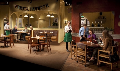 The action is even set in a coyly generic "Italian" (quote marks come free with ticket purchase) restaurant that screams Olive Garden, even though the chain is never mentioned in reference to this specific locale within the Idaho city that gives the play its title. (The cavernous but gorgeous set, by Lauren Helpern, is meticulous in its straight-faced-parodic faux-faux-Tuscan appointments.) So cunning are Hunter and his director, Davis McCallum, in rustling up the mass-produced detailsthe condescending "Famiglia Week" sign! the breadsticks!that the entire 100-minute evening unfolds like an elaborate joke about certain dining destinations in the New York Theatre District, from someone who knows better to someone who knows better. That, alas, is all Pocatello is. If Hunter sends regular signals that he's trying to pen a profoundly scathing indictment of Middle America, similar to his play The Whale, which Playwrights Horizons produced two years ago, he overplays his hand at every turn. Certainly there's a place for such a work, even multiple examples (Eric Bogosian's 1994 Suburbia, revived at Second Stage eight years ago, is another), and a thoughtful dissection of how corporate falsity is eating the center of the country alive would be of particular worth now, as such issuesviewed from every possible perspectiveseem to be on everyone's lips these days. But Hunter's interest is so limited in scope and execution that what's onstage comes across as little more than a frothing rant. The manager of the restaurant, Eddie (T.R. Knight), is a once-upon-a-time brilliant kid who's wasted away his life and his family in this latest in a string of dead-end jobs that's apparently putting him on the same track as his father, who committed suicide a number of years ago. Eddie is estranged from his family, though by no one's conscious choice: His brother, Nick, got out and is selling real estate in St. Paul, and can't bear the thought of coming back; and their mother, Doris, never having recovered from her husband's death or Eddie's coming out as gay, wants nothing to do with the place at all. Though he's committed to rekindling bonds, by tricking Nick (Brian Hutchison) and Doris (Brenda Wehle) to come visit him, Eddie's also hobbled by the impending closure of his unprofitable eatery. He hasn't yet told his employees they have less than two weeks of salary remaining. Max (Cameron Scoggins) is a criminal drug addict who's working here because he can't get a job anywhere else. Isabelle (Elvy Yost) is listless and ambitionless, an orphan (her parents died in a car accident) who's working here because she has to do something. Troy (Danny Wolohan) is at war with his alcoholic wife, Tammy (Jessica Dickey), and is trying to keep their daughter, Becky (Leah Karpel), away from her; Tammy has her own problems, forced to provide emotional support for Troy's dementia-riddled father, Cole (Jonathan Hogan), while Troy is at work. And did I mention that the restaurant's food literally makes people sick? It does! Doris won't even look at it because of the gluten (Eddie is out of the gluten-free pasta), and Becky is so obsessed with where its ingredients come fromand does she ever find them wantingthat in the opening scene, when the two families collide during dinner, she vomits it up onstage. Hunter comes closest to sympathizing with Becky, painting her as the only one who gives a thought to the concerns of the outside world, and his writing for her reveals a genuine sense of social conscience that seems intended to be the drama's fuel. (She gets suspended from school for showing classmates Google-unearthed photos of the 1937 Nanking massacre.) But Becky, like everyone else, is defined exclusively by her discontent. It's difficult to spend nearly two hours listening to characters who don't have much to express beyond their hatred for themselves, for each other, and where they live if they don't bear some qualities that can redeem or at least temper them in our eyes. None of that is allowed through: The only person with a vaguely positive outlook, Nick's wife Kelly, is constantly griped at by others and played by actress Crystal Finn as borderline autistic. Knight plays Eddie's naïveté to the hilta major risk, given how smart Eddie supposedly isbut because everyone onstage reviles Eddie for one reason or another, no one takes even the earnest version of the man seriously. Hunter and McCallum, who provides a staging that's at once intense and restless, push everything so far that you're unable absorb any substance that may exist in Hunter's argument; you just want to get away from these people, most of whom have chosen or are choosing to be miserable. Though Knight underplays Eddie's pain as much as he can, making an elegant attempt to hide it beneath a convincingly unconvincing sunny exterior, you're always aware of how hard he's working just to maintain a watchable, sensitive core. None of the other actors accomplishes as much; their portrayals are, strangely, all brittle, jittery, angry, and impatientseparate extensions of the homogenized personality such a distressed community imposes on its inhabitants, I assume was the goal. By treating these characters in this fashion, however, Hunter and McCallum fail to elevate their work above what they're criticizing. Rather than show how real lives are being eviscerated by cookie-cutter retailers squeezing the soul out of their homes and bodies, they're content painting the city's inhabitants with a single, broad, dehumanizing brush: unworthy of possessing dreams, hopes, fears, or love, and essentially deserving their own destruction. Olive Garden may or may not be what's wrong with America, but it's not exactly clear what Pocatello offers that's any better.