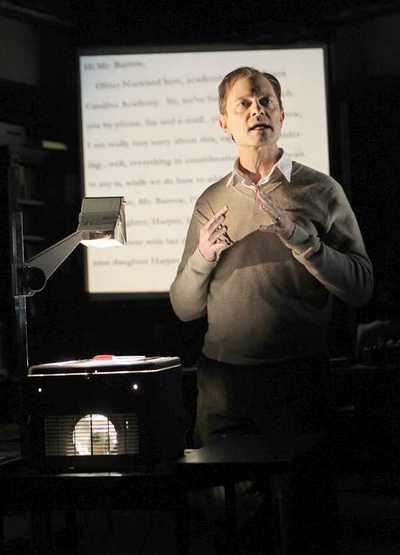 Both she and her lead character, Paul Barrow (David Hyde Pierce), deploy the ink with furious abandon in the first (and only funny) moments of the play. Paul, the senior editor at "a small but incredibly elite" New York publishing house, first appears standing behind an overhead projector on which is displayed a rambling e-mail from the academic dean of the private school Paul's adolescent daughter, Harper, attends. "Now this is a classic example of a piece that needs hefty editing," Paul says, his voice tinged with exhaustion and anger, yes, but also the passion of a man who loves and believes in his job. He demonstrates his facility with the task by drawing sweeping red beams through every line of the bloated note except for the last part of the last sentence, which he leaves intact (and marks for proper capitalization): "Your daughter Harper is expelled." No message could be clearer: Shorter and more to the point is better than endless, unhinged blabbing. So why is the rest of Metzler's play crammed to bursting with the latter? That, alas, is the only question worth asking about the rest of this muddled evening, which has been cautiously, if none too subtly, directed by Leigh Silverman. Metzler occasionally strikes a vein of comic ore, as when Paul must deal with the overprotective attitude ("You crossed out pages 82 through 149," she screeches at one point, "and below 'The End' he wrote, 'Finally.'") of his star client, Vanessa Finn Adams (Rosie Perez). But after the first 20 minutes or so, such finds become painfully rare. The trouble begins with supporting characters that are nowhere near as detailed or real as Paul. Steve (Michael Chernus), Paul's office manager, has begun living in a tent in the lobby after his dog started showing more affection to his roommate; and Bailey (Jessica DiGiovanni), is the easily overwhelmed, foggy-headed new college intern whose application cover letter is not spared Paul's eagle eye, and who vanishes from the action before she's contributed to it. Both belong to a more disjointed evening of unstructured silliness, not the intense exploration of the personal politics of perfection that Paul represents, and don't herald much brilliance to come.