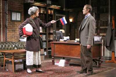 Not nearly as much as your patience is, however. Once those charming yet plausible early absurdities vanish, they never return, and the plodding psychological examination that follows seems to belong in a different play altogether (not least because a third of it is conducted in Russian). Metzler may be trying to make a subtle comment on the dangers of letting work and home life intertwine as much as Paul has, or that words ought to always mean less than the humans who created them. But by exposing us to Paul's regimented, yet endearingly logical, worldview in the opening scenes, she establishes the expectation that it will prove important later and that we're expected to care about it. Neither is the case. Metzler demands we sympathize with Harper, despite her leading on the dopey but well-meaning Steve, colluding with Vanessa (because, of course, writers have relationships with their editors' daughters all the time), and then committing several acts of horrifying cruelty against Paul because of faults in her own personality. Yet her treatment of him is so callous, almost in "revenge film" territory, that it's clear we're supposed to loathe himthough he's driven only to "emaciate prose and make it obey." Metzler's last-minute explanation of why this is akin to a crime isn't just incredible, it's also a violation of the faith she convinced us to invest in Paul in those realistic curtain-raising moments. This is pure theatrical bait-and-switch that corrupts the play and almost everyone involved with it. The two exceptions are Todd Rosenthal, who's designed a cramped yet sumptuous exposed-brick office set that looks like the kind of homey place you'd want to work in, and Hyde Pierce. He's terrific as Paul, intricately projecting the man's repressed jitters and barely concealed impatience at a world that won't bend to his provable whims, and he makes the later twisting and turning of the character into a hapless victim of his lessers' acidic largess almost acceptable. With the exception of Perez, who finds pleasing spark in Vanessa's initial (and more sensibly angry) appearance, the cast members grate with their cutesy, over-the-top deliveries of lines that, admittedly, would challenge even reigning masters of understatement. (Minifie is especially shameless in her broad laugh-baiting.) Silverman, who also staged the more compelling crossed-wire-communication play Chinglish on Broadway this season, can't wrangle all these disparate into anything dramatically coherent or emotionally recognizable. There are too many pieces and too little connecting tissue. That suggests that what Metzler needed most was, what do you know, an editor! Or, as Paul describes any overeager writer's missteps: "...they have a brave, raw skeleton.... But then, they get hysterical because the skeleton is bare, so they glop on muscle and fat and needless characters and soul-deadening emotional schlock, until finally, their prose is prosaic, bloated and has no thesis, a phony humility, an annoying sentimentality and sundry other grating tropes." It's nice to know that Close Up Space possesses at least some self-awareness, but it's almost everything else that's a problemand one that's probably too imposing to fix only with a liberal dose of the still-much-needed red ink.