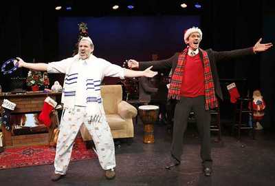 Although this sometimes explodes into irreverent sillinessthe mashup of "O Hanukkah" and "O Christmas Tree" into a "dueling-banjos" style sing-off is the best example of thismostly it's just an excuse to have an old-fashioned good time with performers who seem to long to deliver nothing but. And because the tone is set immediately (Kudisch makes his "entrance" wearing a Snuggie, then doffs it to reveal a T-shirt and pajamas), and maintained with a gentle wink throughout, you never think you're getting less than what you anticipate and deserve. This is a particularly nice trick given that the show is, at its core, tradition-bound. True, Denman and Kudisch, who created the show and have provided all their own arrangements, don't always stick with the tried-and-true. The lovely "There's Always Tomorrow," from the Rankin-Bass Rudolph the Red-Nosed Reindeer, is an unusual inclusion, and Kudisch's crooning Trey Parker and Matt Stone's mock-bitter "Lonely Jew on Christmas" (with new material Kudisch penned with Michael Lavine), is a rare treat. But the blend of secular and religious numbers, and the ultimate message of the holidays being about togetherness and family and not gifts, is well-trod territory. Denman giving Kudisch a festive tap lesson (to "Put One Foot in Front of the Other") may as well have been lifted from White Christmas. Who couldn't foresee that there would be some sort of gift-giving component, or that Kudisch would run through the litany of classic Christmas songs penned by Jewish writers? There's even an onstage reading of "The Night Before Christmas," albeit ornamented with clever folio sound effects, that proves neither Denman nor Kudisch wants to take too many chances. There is, however, nothing wrong with playing it safe, provided even the most familiar elements are executed to perfectionand here they are. A kazoo-kissed "Jingle Bells," "Holly Jolly Christmas" spiced up with Jamaican rhythms and intonations, David Friedman's assertive "My Simple Christmas Wish," Vince Guaraldi's "Christmas Time Is Here" given an earnest duet rendering, and orchestrations that are as heavy on its stars playing the guitar and ukulele as it is the piano, bass, and drums in Timothy Splain's band should not easily and peacefully coexist. But because of Denman and Kudisch's ease with themselves, each other, and the audience, each new-old number jolts you attention even as it sets your head a-nodding in recognition of why it's here. (One assumes that someone considered not giving Denman a lengthy Nutcracker-infused tap solo would be considered a crime against humanity; whoever that was quite possibly was correct.) Big problems are nonexistent, though things do get maudlin as they reach their conclusion; the tart, casual nature of the earlier bits, unencumbered by hoary devices like a letter from Denman's mother or direct allusions to last week's Newtown, Connecticut, shooting, is definitely more overtly fun. But even when they submit themselves fully to your expectations, their artistic abilities and onstage miens keep things chugging along on the irresistible fuel of pure show-biz. By the time the finale arrives and the duo dives headlong into an encore of other upcoming holidaysNew Year's Eve and Valentine's Day (though there's some question about the latter one)you're not ready for either Christmas morning or the final day of Hanukkah to end. Chances are you'll find yourself wishing, as you might still on those days in real life, you'd have presents this good to open all year long. As long as Denman and Kudisch are out there the possibility exists, and that's more than enough to find under any tree.