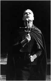 Other than Schreiber, the great stand out is Colm Feore, whose Claudius is a hypersexed snake-oil salesman. He brings to vivid life Hamlet's line that "one may smile and smile and be a villain." Feore's interpretation of Claudius' soliloquy as he tries to pray is the best I have ever seen. He rules over a Denmark which, probably in part due to the nature of his reign, is as scary as an insane asylum. Claudius is often played with an almost Machiavellian evil, but Feore's Claudius is more frightening for his banality; he is selfish and cruel, but very human, and therein lies his threat. The women in the play are less well served. Serban's Denmark is rotten in that it is utterly debauched. As a result, Diane Venora plays Gertrude as an addled nymphomaniac. Was it really necessary to have Polonius tell his theories about the cause of her son's behavior while Gertrude is wrapped, post-coital, in a sheet? Similarly, Lynn Collins' Ophelia turns the eating of an ice cream cone into an X-rated act. Both women's roles are problematic, and though these are not the choices I would have made, at least they are bold and consistent. Where the play fails: what the heck is going on with the giant sandbox in the second act? And why are there three apparitions when King Hamlet's ghost appears? (I could probably come up with plausible interpretations, but these things just don't work for me.) Serban also overdoes an incestuous relationship between Laertes and Ophelia; where Shakespeare has drawn with whisper-light strokes we need not throw on buckets of paint. Perhaps the most unfortunate part was that the ending felt a bit rushed and I was not moved by Horatio's last words over Hamlet's body. If we don't cry when Hamlet dies then someone has not done his job. The most moving Hamlet that I have seen was actually Mel Gibson's. Feel free to email me if you agree or disagree. The key with Hamlet is never to try to create the definitive one. When people do, they end up getting too heavy-handed and taking themselves much to seriously. Serban, possessing a more playful touch, finds the joy in the text and takes us on a terrific ride; that is indeed worthy of praise. Hamlet, by William Shakespeare. Directed by Andrei Serban. Scenic Design by John Coyne. Costume Design by Marina Draghici. Lighting Design by Michael Chybowski. Sound Design by Donald DiNicola and Obadiah Eaves. Original Music by Elizabeth Swados. Screen Art Design by Marielle Bancou. Starring (in alphabetical order): David Wilson Barnes, Christian Camargo, Justin Campbell, Lynn Collins, Colm Feore, Dion Flynn, Jonathan Fried, Andrew Garman, Adam Greer, Marc Gwinn, Francis Jue, Richard Libertini, Hamish Linklater, George Morfogen, Robert Alexander Owens, Liev Schreiber, Jeremy Shamos, Wendy Rich Stetson, Diane Venora, Robin Weigert. Theatre: The Public Theatre, Newman Theatre, Astor Place. Schedule: Tues. - Fri. at 8pm; Sat. at 2pm & 8pm; Sun. at 3pm. Through January 2, 2000. Tickets: $45. Call Telecharge at (212) 239-6200 or purchase tickets in person at the box office. -- Wendy Guida |