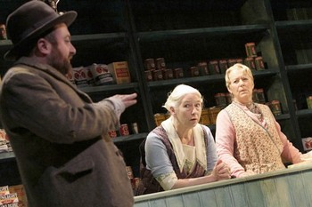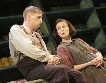 McDonagh's play The Cripple of Inishmaan, which the Atlantic Theater Company is presenting in a coproduction with the Druid Theatre Company of Galway, Ireland, is an excellent example. At first it might appear exploitative, playing on your sympathies for its troubled title character, "Cripple" Billy Claven. But dig deeper into the life of Billy and his neighbors on the Aran Island of Inishmaan and you'll find a hilarious, dark little drama that needs no help at all to be a scheming, compelling joy. In terms of personality, it's not too far removed from McDonagh's most recent plays to hit New York, The Pillowman and The Lieutenant of Inishmore. An atmosphere that wobbles between brooding and comic, off-center characters recognizable as both bystanders and as victims of themselves, the sense that destruction always lies just beyond the stage - all are richly present in director Garry Hynes's production, suggesting a communion with McDonagh's antiestablishment weird style that reportedly didn't jell when this play was first produced in New York at The Public 10 years ago. Yet if The Cripple of Inishmaan doesn't spin a yarn as self-tangling as The Pillowman's does, and if its greater lessons are virtually nonexistent compared to those in The Lieutenant of Inishmore, it's still an amazing little play that thrives on dreams sought, denied, and lost. At the center of this swirling vortex of foggy hopes in 1934 Ireland is Billy (Aaron Monaghan): His left arm and leg are twisted into uselessness, but his dreams of personal success, learning more about himself, and women - are as straight and true as for any young man. When the American filmmaker Robert Flaherty comes to Inishmaan to shoot his, ahem, "documentary" The Man of Aran, every inhabitant yearns to be rescued from a life of drudgery, but it's only Billy who is. Leaving behind questions about his real family (why did they abandon him shortly after birth?), the two elderly sisters Kate and Eileen (Marie Mullen and Dearbhla Molloy) who've made themselves his surrogate mothers, and the colorful collection of young and old people alike who populate his Inishmaan sphere, Billy pursues success in the United States - only to learn it's not all scented smoke and stardust.