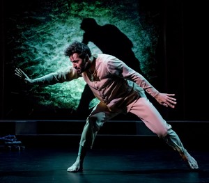 Fairchild has choreographed and performs a bravely un-balletic role as Mary Shelley's enduring creation, the monster who is both innocently naïve and dangerous to others, a "fallen angel" as he refers to himself at one point. Fairchild's gives us a remarkable mix of off-kilter lurching, crawling, twisting, and careening movements as he portrays the benighted creature who longs to fit in with human company and yet remains the eternal outcast. As a dance piece, Mary Shelley's Frankenstein is a masterful work, aided in no small part by Bill Toles's gripping sound design, David Bengali's stormy projections, and the performances by a trio of excellent musicians of works by Liszt, Bach, and Schubert that are effectively in sync with the choreography. Act I of the two-act, 100-minute production gets off to a rousing start with the "birth" of the monster during a violent thunderstorm. With the assist of Parker Ramsay's soaring organ playing of a Liszt prelude, it is a gloriously gothic moment, as if we were watching a silent horror movie with live accompaniment. This and most of the early scenes allow the company and Eve Wolf, its founder and the playwright, to show us what they can do with the right combination of elements. As long as the focus is on Fairchild and the music, which includes some beautiful singing by mezzo-soprano Krysty Swann who serves as an ethereal, comforting presence for the monster, the production, directed by Donald T. Sanders, comes closest to fulfilling the company's mission. Few in the audience will be unfamiliar with the story of Frankenstein, and so they will happily follow Fairchild's progress through the highlighted episodes, including the monster's sojourn with the blind musician (Rocco Sisto) and an unhappy act of violence that concludes the first act. But Eve Wolf has another story she wants us to heed, that of the creator of Frankenstein, Mary Shelley. In Mary, Ms. Wolf sees a parallel story as dark as that of the monster, about a woman whose own mother died giving birth to her, who has lost three children of her own, and whose ambitions as a writer are dismissed as trivial and inadequate by her husband, the poet Percy Shelley. The problem is, the production simply cannot find the right balance between these two stories, one a towering work of fiction, the other a sadly earth-bound biographical narrative. There is simply not enough "gothic" to sustain both, and the overuse of excerpts from Mary Shelley's diaries and correspondence weighs things down far too much, especially in Act II. It also doesn't help that both Mia Vallet as Mary and Paul Wesley as her husband speak in contemporary cadences instead of commanding the kind of heightened language that would more closely align with the tale of the monster. All told, the Ensemble for the Romantic Century and Eve Wolf have attempted to cover too many bases. Conceptually, they've got amazing potential for bringing together so many different art forms, but they've got their work cut out for them in striving for the right balance. They will have another shot in May, when they bring their production of Tchaikovsky: None But The Lonely Heart to the Signature. Meanwhile, there is Mary Shelley's Frankenstein with its grand music (the other two musicians are Steven Lin on piano and Kemp Jernigan on oboe, while Peter Ramsay plays the harpsichord as well as the organ), and, of course, Mr. Fairchild's dazzling choreography and dancing.