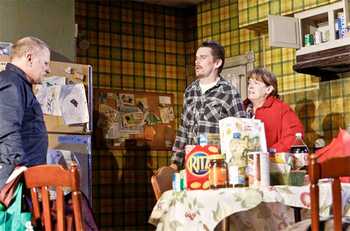 I spent nearly every second of the play's exhausting running time (two hours and 35 minutes) trying to discern a bigger theme, some concrete meaning, or even a coherent rationale for this play's existence aside from personal catharsis for Nohilly, who has admitted its story is largely autobiographical. A metaphor for the perceived desolation caused by the George W. Bush administration? The corrosive effect financial and emotional poverty has on working-class folks? An indictment of self-absorption so scathing, so satirical that you can't help but mistake its message for its own essential nature? But as with everything in Scott Elliott's tedious production, no explanation clicked. This is nothing more than an excuse to depict angry people getting angry at each other and their angry lives. But when disconnected from passion, reason, narrative, or in this case all three, such disconnected rage is ugliness for the sake of uglinessnot drama, and not worthwhile. Nohilly's threadbare scenario bears this out. A mother (Ann Dowd) is very close to both her grown sons, Travis (Ethan Hawke) and Matt (Thomas Guiry), but is locked in a hopeless marriage to Bill (Gordon Clapp). Why has their loveless union persisted for decades? Good question, but it's unimportant to Nohillyfor this clan, things have always been that way, and that's justification enough. So we see him promise to fix the roof and not do it, which makes her mad; we see him promise to fix the electric heat and not do it, which makes her madder. She carries on secret phone conversations on her private line (which, for some reason, is installed in the open kitchen, but no matter), which makes him mad. He gets mad because she gets mad, she gets mad in return, they scream, and the adjourn until later, when the process repeats. Of course this has rubbed off on their children. Travis is an itinerant drug addictalcoholicsmoker who can't keep a job or a girlfriend, and spends his last few hours at home before pursuing a new (and likely pointless) venture in California sleeping with the next-door neighbor (Daphne Rubin-Vega), whom everyone hates because she and her husband can't control their children and blare their Latin music all night long. Matt's a serial liar who's married with two kids and one more on the way, but prisoner to a gambling addiction that's led him to borrow vast sums of money, from family, loan sharks, and banks (signing his father's name) alikeand, oh yeah, he's already lined up a new fiancée with whom he's planning to live in Mom and Dad's house until his is finalized. Only daughter Sarah (Natasha Lyonne), married and completely out of the house, has a relatively normal life. There's nothing likeable, or even redeemable, about any of these people, or their behavior toward each other or themselves. In creating characters that do nothing but highlight the depths to which people can willingly sink, Nohilly gives us nothing to grab onto, root for, or sympathize with. Without an Edmund to hope for or a James Tyrone's promise to mourn, without an Amanda to pity or a Laura to love, this play is crushed under the weight of its own self-important bitterness. As a result of the ongoing hysterics of hate, the few climactic moments that should excite us (most of which are confined to five minutes just before intermission) come across only as blocking. Christmas trees being thrown over, windows being punched out bare-handed, and characters engaging in fistfights on steep staircases have no more visceral impact than a CNBC special report on declining pineapple futures. Rather than nonstop acid spewing, what the evening truly needs is balanceand there's none to be found in either the script or the production. Elliott's tone is abrasive and his pacing indefensible, every pause loaded with more pregnancy than an obstetrician's office, qualities that extend to Jason Lyon's one-note trailer-park lighting. Set designer Derek McLane's broken-down house set is just as utilitarian, and just as unimaginative. The same is true of the actors. Hawke does everything he can to keep Travis (Nohilly's mammoth-sized, authorial stand-in) on point, but unlocks no humanity or purpose in him that might lower him from remoteness to relatability. Dowd and Clapp are superb at playing upset, which is good because they're allowed to play nothing else. Guiry scribes no confusion, regret, or remorse onto his empty-chalkboard role, which would seem to allow potential for each. Lyonne and Rubin-Vega, however, do make positive impressions as two very different women who won't take no for an answer. Each brings a humor (Rubin-Vega saucy, Lyonne dry) and vivacity to the stage that underscores their characters' belief that life isn't just salvageable, but that it can and should be lived, regardless of obstacles. That they appear only briefly in one scene each is not, one suspects, coincidental. If Nohilly's goal is to depict a family charting its own death because it has nothing better to do, then two characters concerned with denying that cycle only get in the way. But if Nohilly actually wants to say something rather than just speak loudly, they shouldn't be on the periphery. O'Neill, Williams, and Inge understood that contrasting outsiders of this sort were necessary to fully illuminate the dark interiors of struggling families, and provide a respite from the threat of unremitting awfulness. Nohilly's brushing aside such necessary sources of light while insisting that the blackness of the suburban American soul is its own reward is neither insightful nor successful. It's bloodand heartthat Blood From a Stone needs much, much more.