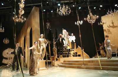 Is that enough to sustain an hour and a half of theater? Perhaps, but as written here by Kirk Lynn and directed by Shawn Sides, the answer is not so clear cut. Though there are isolated instances of insight to be found, and Mimi Lien's sparkling set, Emily Rebholz's swank upper-crust costumes, and Brian H. Scott's luxurious lights successfully underscore the trappings and traps of success, the filigree ultimately just masks the more profound thematic emptiness at the heart of this work.