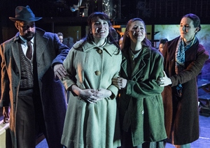 Now playing at the Royal Family Performing Arts Space, Rock And Roll Refugee is filled with hard rocking numbers written by Ravan, who, while never truly a superstar, has had a successful career as a recording artist and producer. She was a member of what has been widely reported to be the first all-female rock band to be recorded by a major studio (the band was Goldie and the Gingerbreads, "Goldie" being the Americanized version of Ravan's given name "Genyusha"). She later was lead singer for Ten Wheel Drive. With the show (book by Chris Henry, who also directs), the heavy lifting in terms of the singing is left to the vocal prowess of Katrina Rose Dideriksen, a terrific belter who has performed on Broadway (Hairspray) and who was understudy for the lead in A Night With Janis Joplin. The Janis Joplin connection is very apt, as there is definitely a Joplin quality to Genya Ravan's raspy-voiced singing. Dideriksen adds to the image by doing her numbers while grasping onto and intermittently swigging from a bottle of booze. She is backed by an equally talented three-piece band (Daniel A. Weiss on keyboards, Ann Klein on guitar, and Warren Odze on drums). Based on Ravan's memoir "Lollipop Lounge," Rock And Roll Refugee, is presented as a memory play. Ms. Dideriksen and the band perform from a loft overlooking the space where the memories come alive. Genya, the established singer, is thinking about her life from the time her family escaped from Poland, to their arrival at Ellis Island, to a decade of living in the Lower East Side. The play fleshes out the biography hinted at in the songs with scenes of those difficult years for Genya, suffused with physical and sexual abuse, an early and short-lived marriage, and a rebelliousness that led her, among other things, to flee her husband by hitching a ride on the back of a Harley and hightailing it all the way to California. The younger Genya, or Goldie as she was called then, is played from the age of 7 to her teenage years by Dee Roscioli, who does particularly well in capturing that 50s rebel-without-a-cause attitude. A still younger version of the character is played by Imogen Williams. Also of note are Charlotte Cohn and Chris Thorn, who play the parents. You can easily see the toll their forced exile has taken on them, even as they mistreat their two daughters, Goldie and Helen (Kristin Nemecek). They have sacrificed much, including two sons who died in the Holocaust, and they wonder as they watch their out-of-control teenage girls whether it was worth it. The budget-constrained production makes good use of projections (video design by Matthew Haber) and a low-keyed and functional set design (by Cheyenne Sykes and Alex Petersen) to suggest Ravan's life on the Lower East Side. But it is the music that matters most, along with Genya Ravan's strong and resilient personality that shines through no matter what obstacles block her path. The show ends on a high note indeed when the three actresses playing Genyusha/Goldie/Genya come together to sing a rousing version of one of Ravan's autobiographical songs, "202 Rivington Street," referring to the address of the tenement where her family lived. By then, of course, we have a pretty good idea of the meaning behind the words, and the song perfectly encapsulates the entire evening.