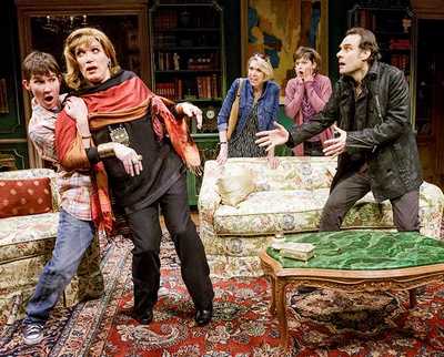 Luckily for Jimmyer, sorry, Adrianathe memories Christina (Mary Bacon) has of her aunt are foggy at best and unflattering at worst, and she's been beset by enough personal tragedy over the last year to cloud any second-guessing she may attempt. She also must contend with her daughter, Rachel, who's transgendered and insists on being called Oliver (Keira Keeley). And they all must cope with the appearance of Rodney (Jonathan Walker), the only man who ever cracked the Faberge egg Adriana constructed around her heart, and who hasn't given up his past illicit, and far too observant, ways. The setup is delicious, promising a slam-bang collision of names, faces, histories, and costumes that can't be trusted. This, alas, is never fully delivered upon, as it is in Busch's more potent Vampire Lesbians of Sodom, Die Mommie Die!, or The Divine Sister. Though there are laughs to be found, particularly from Busch, Halston, and Bacon when Christina is most exasperated, the play fails to either reach its highest aspirations or convince you that these are likable people worth caring about. The more they all get wrapped up in the various deceits (and do the wrapping themselves), the less you want most of them to succeed, and the harder it becomes for them to distinguish the "good" con artists from the "bad" one (unfortunately a necessary element of the story). That Busch falls well short of uniting all the disparate story threads is an unrelated, though still serious, issue that ensures the play achieves, at best, muted success. Even Andress, a frequent Busch collaborator, has difficulties balancing the many lower-key moments with the lesser-grade crazy that eventually develops. Most other elements are, however, in fine form, from Anna Louizos's eye-grabbing set to Gregory Gale's costumes, and of course the performances. Halston is a barbed delight as Rita, blending squishy and brusque at the same time as only she can. Bacon makes hay of Christina's endless monologues about her woes (which include a lost job, a dead friend, and stolen credit cards), without ever lapsing into entirely depressive self-pity. Keeley is utterly convincing in her gender-bending role, as are Harris as the grand dame Adriana and Walker as the straight man (in more ways than one) who's positive he has the whole gig figured out to his advantageuntil, of course, he doesn't. But without a stronger core, you too often feeling that they're spinning their wheelsit's not that you can't predict where the characters are headed (though you can't), but that they never seem to get anywhere. They spend too much time mired in questions of who they are and why they're all together to come up with the answers that might turn out entertainment and enlightenment in equal measure. Busch's best plays succeed for the same reasons he does and Jimmy ultimately manages here: However they're dressed, in whatever wigs they're sporting, they know exactly what they are and what they need to be. Even if you know the references, just a little too often the same is not true of The Tribute Artist.