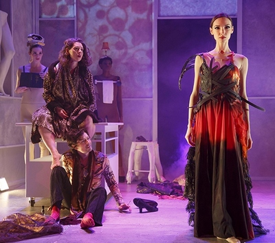 That's clear from the opening scene, too, in which three lithe, leggy models (Allegra Rose Edwards, Chelsea Nicolle Fryer, and Nina Ordman) strut around the stage in wild-animal getups so outlandish they almost look plausible (if not outright likely). We're talking antelopes, scorpions, vipers, that kind of thing, all of which are rendered by costume designer Jenny Foldenauer with an acidic sense of humor and a keen eye for the absurd that only the world of high fashion could ever accept as germane to humanity. So stirring is the effect, in fact, that when a later parade of regular clothes for regular women appears, they almost lookwell, out of place. They're supposed to, for what it's worth, at least in some way. The universe Callaghan has created for Everything You Touch, which director Jessica Kubzansky has brought to vivid life, is one in which everyone is defined, positively or negatively, by the skins they present to the world. Sometimes this is actual clothes, sometimes it's a few extra pounds, more often still it's a state of mind. But the characters in the play is fighting against someone else's worse perceptions (and, not infrequently, less than the best of their own) to the point that the models are even conscripted as water coolers, gumball machines, telephones, computer keyboards, and so on. In one way or another, we all objectify someone who'll have to pay the price for our shortsightedness. This lesson is primarily forwarded by a thirtysomething woman named Jess (Miram Silverman), who's long lived wrapped in the disapproval of the mother she hasn't seen in more than a decade. Tortured by friends and family about her weight, and with Mom herself wrapped up in the modeling world, Jess has major body issues that her mother's imminent death is now yanking to the service. As Jess begins a pilgrimage to visit her mother one more time before the end, we leap back to the early 1970s to see how similar issues conflicted British fashion scion Victor Cavanaugh (Christian Coulson), his exotic muse and bedmate Esme (Tonya Glanz), and Louella (Lisa Kitchens), the Little Rock refugee who's in Manhattan for the first time after winning tickets for a "VIP fashion treatment" with Victor. Callaghan switches frequently between the eras, using Victor as a bridge: The free spirit that threatens to pull apart the earlier world might be just what Jess needs to push her life back together. The precise nature of Victor and Jess's relationship will be revealed in due courseas will a few major family secretsbut self-image and self-doubt have factored into all their lives from day one, and it's not infrequent that those who are the most beautiful-looking on the outside are the most screwed up on the inside. And whether Jess will ever find what she's looking for, let alone acknowledge (and return) the affections from the coding colleague she leaves behind, Lewis (Robbie Tan), is itself not exactly in question. For these reasons, Everything You Touch is not particularly deep, and you shouldn't expect to learn much from it. But, as we've established, style matters, and, in the physical production (Francois-Pierre Couture did the cubist set, Jeremy Pivnick the lights) as well as the dialogue, it's all been fluffed up to perfection. Take, for example, Jess's description of one of Victor's signature designs: "You said you wanted to make a dress that looked like autumn and spilled mimosa and butt-sex and her laughter." Or Victor's explanation of the execution of the final dress and his own artistic philosophy: "Her posture has to be straight as a blade or she'll get speared in the ribs.... She must be rail thin for it to work.... If she had killer cans or a big, dumpy bottom, would you be interested in the clothes at all? Fashion is about self-denial and sacrifice. One must let oneself wither. Give into the death instinct." Or how Victor dresses down a model after she trips during a show: "You sleep in a sleigh bed at night, upholstered in a chintz of deep pink cabbage roses garlanded with blue ribbon and outlined with sage fringing. You eat rose and violet creams in it and read Barbara Cartland romances. The person I'm looking for slumbers on a metal grate under a tarp of nails and eats leather and roots and feces." Because this speech is so ingrained in the characters' minds, and because the actors navigate so utterly naturally, it never feels as though Callaghan is stretching for a laugh or reaching to make a point about the corrosive environment that's consuming them. No one handles it better than Coulson, whose equally suave and scummy Victor is a wretched joy to behold, but Glanz's death glares and bland but lacerating delivery makes her Esme almost as deliciously vicious. And it's fun to watch how Kitchens presides over Louella's morals melting and how Silverman projects Jess's tortured state as the ultimate beneficiary of the game playing that long preceded her. The evening would be better if there were more reason to care more about Jess's journey, and if the characters' calloused outer coatings more easily parted to reveal the anguished souls they're desperate to repair. But if Everything You Touch is determined to stick so close to the surface, it's to its extreme benefit that its surface couldn't possibly look better.