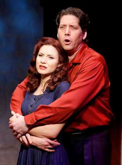Moore and her musical director, John Bell, have, however, gotten one thing undeniably right: the singing. As the fighter, Sean Enright, James Barbour brings his luscious baritone to full bear; and as his object of affection, Mary Kate Danaher, Jenny Powers is in firm command of both her belt and its more legit extension. Barbour sounds both dark and yearning, his treatment of Sean's big first-act solo "I Have My Own Way" a shivering explosion of subdued passions, and Powers delights with both the defiant "Sez I" and the discovering "He Makes Me Feel I'm Lovely." In their duets ("But Beautiful" chief among them), their voices blend seamlessly into a single throbbing heart that summons the essence of theatrical romance. Kathy Fitzgerald, as Kathy Carey, injects plenty of saucy bite into her roof-raisers, "Sad Was the Day" and "I Wouldn't Bet One Penny" (which she sings with Samuel Cohen, who's winning as the matchmaker). The performers' acting throughout is less sureparticularly Powers, who fails to sell Mary Kate's multiple changes of heart, and Barbour, who's a bit stiff to convince as a supple brawler now overcome with guiltbut it's tough to blame them given the stitched-together script they're working from. Some of Donnybrook!'s charms are occasionally still evident when the music starts, but when the title song has the ensemble longing for an event "Where ears get uprooted / And droop like a drape / And shinbones are booted / Out of shape," it's difficult to not wish you'd experience from the show itself some of the same punch and kick.