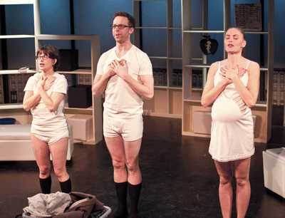 The leader of the pack is Tamara (Tara Westwood), a successful life coach, author, and motivational speakermodeled, perhaps, on the character Susan Sarandon played in the Showtime's, "The Big C," although the play also makes a couple of snarky references to Tony Robbins, the king of motivational infomercials. Tamara is so self-assured that she gives birth in the evening and is back in the gym in the morning without an ache or a stretch mark to her name. She is joined in the family portrait by her happy-to-go-along husband Martin (Andrew Blair), their five-year-old son Ben (Michelle David), and the newborn Bea, a baby only a mother or a horticulturalist could love. (Bea is a plant; Tamara adapts!). Nothing throws Tamara, who plans every minute of every day for herself and her brood. Their lives are controlled by the schedule and by the rituals that mark their days, from stripping to their underwear before they sit down to dinner, to Ben's carefully-monitored violin practice ("you're getting so good at self-criticism," Tamara praises her son), to the couple's weekly "Sex and Recreation Day." When Martin proposes a little off-the-plan book sexual improvisation, Tamara is appalled: "Improvisation is for people who don't know what they are doing!" And so their lives go on in very predictable patterns until they come across Belinda (Marguerite Stimpson), Ben's substitute kindergarten teacher, whom Tamara visits to discuss the "Cheerios incident." It seems her beloved son was exposed togaspgrains during snack time, and she is there to upbraid Belinda about it. (Ben has no allergies, but maintaining strict control over the family's diet falls under one of Tamara's absolutes). Belinda, we quickly learn, is also neurotic, but more within the range of what passes for normal levels of neurosis among New Yorkers. She is self-deprecating, tends to speak in rhymes when she is nervous, and requires visitors to use a password before she will open the door. But still, she is far less uptight than Tamara, and soon she is encouraging Ben to eschew the violin for more age-appropriate (and fun) activities like banging on buckets and metal containers. She and Martin also find themselves increasingly attracted to each other, and it isn't long before she is welcoming his "improvisations" in a way that Tamara never has. Appropriately, the playwright has actually provided a longer title for the play. Its full title is Branched: A Comedy With Consequences. And, indeed, there are consequences to upsetting the applecart. Ben, in particular, is unable to tolerate the interruption to the reliable consistency of his family's routines. The world has become a scary placepretty much like it is for most five-year-oldsand the fallout from these changes starts to pile up toward the end, as Tamara tries to put Humpty Dumpty back together again. There is nothing subtle about Branched, which is performed in the manner of a lunatic farce under the direction of Robert Ross Parker. Given the underlying truth the play addresses of the futility of attempting to truly control our lives, I would have preferred a more reined-in presentation, bringing it closer in style to one of Christopher Durang's laughter-through-pain works like The Marriage of Bette and Boo. But there is no faulting the cast, as the actors throw themselves completely into their roles. Ms. Westwood's Tamara shows us the crazy underneath the super-normal. Ms. Stimpson as Belinda wears her neuroses like a badge of honor. Mr. Blair as Martin has the look and guy-next-door mannerisms of a goofy Seth Meyers. And Ms. David, who does voiceover work in addition to acting, splendidly captures the five-year-old Ben. So, if you are looking for a wild ride in the manner of the Mad Tea Party's spinning cups at Disneyland, then Branched is the perfect place to spend the evening.