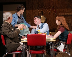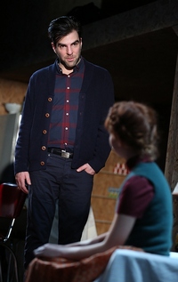 The irritation of that question, and how each individual answers it, is the driving force behind both Haidle's play and Anne Kauffman's production of it. Three generations of a single family learn the hard way (and the harder way, and the hardest way) the joys and the limits of personal satisfaction and edification when circumstances demand they choose between what's right for everyone else, and what's right for themselves. And Haidle's exploration of the consequences, of both paths taken and not, reinforces the many ways in which this question is not as easy as it may first appear. Battle lines are drawn fairly starkly in the first scene, which considers the domestic almost-bliss of a father named Daniel (Brian Hutchison); his pregnant-with-twins wife, Violet (Robin Tunney); their daughter, Beauty (Taylor Richardson); and Violet's father, known only as the Colonel (Tom Bloom), who lives with them. None of them know it when they wake that morning, but this is the last day they will live their lives fully togetherand, in fact, the flash point for a convoluted familial implosion that will take literally decades to work itself out completely. Both the longer-range implications at play and the crucial backstory are provided by an enigmatic figure who knows the minutest details about these people, and is played (with dry whimsy) by Zachary Quinto. As their final breakfast unfolds, he recites "footnotes" that explain the story behind the storywhy, for example, Beauty has not uttered a word in three years, and subsists on things like dirt and paint, or the mechanics surrounding the Colonel's ever-expanding forgetfulness and the attempts he makes to grasp on to what thin shreds of his memory still remain.