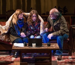 Not much else, however. Only Allison is drawn with feelings and yearnings strong enough to warrant dramatization. Her attempts to hold on to all the parts of her life that are slipping away, and to maintain sanity within her out-of-control family, are genuinely touching; and Winningham, as always a naturally sensitive and highly likable performer, brings to the surface every drop of her pain. What exactly fuels Dean (beyond wanting to encourage his daughter) and his requiem fixation is left a mystery, making his erratic behavior largely unbelievable. Pierce paints Tommy as such a nice young man, you're all but counting the minutes waiting for his dark side (and, when it does, the details are not quite shocking). Further, tone problems are rampant. The whole "tent city" subplot, and everything about Mirtis, is nonsensical almost the point of comedy; Pierce simply hasn't justified the notion that the project justifies as much attention as it receives (offstage). Some of this is due to Kate Whoriskey's muddy direction, which tries to blend the dream-realism of Derek McLane's refuge-cabin set and Amith Chandrashaker's lights with Joshua Schmidt's classic-echoing sound design, but most of it is baked in. Caitlin herself doesn't appear for most of the play, showing up only very late and treated as an inconsequential afterthought (through no fault of the fine young actress playing her, Naian González Norvind). This is part of Pierce's point, that the mythos surrounding Caitlin's work is overshadowing to the point of diminishment what she's actually doing, but her appearance is such an anticlimax that the character may have been more effective being unseen altogether. Aside from Winningham, the acting is uneven, too. Van Patten is enormously appealing and funny, but so hardy that you can't remotely accept that Gram would need to be put into an assisted living center. Sublett charms with his church-boy-next-door persona, but is utterly unconvincing once Tommy's (similarly far-fetched) true colors are revealed. McQuail does everything she can with Mirtis, but it's such a distracted, distracting part, everything about it seems off. And the usually reliable Friedman is altogether at sea, leaving his character a blustery, annoying cipher, and stumbling over so many of his lines during the final press preview it wasn't difficult to tell where he thought he was going with Dean at all. Oddly, the only destination that's clear is that of Her Requiem itself: It wants to remind us that the life we live and the life we give are both precious and worthy of respect, however elusive it may be. But for us to join the characters' journey, we have to be immersed in their world, and Pierce has not made that easy. Maybe Caitlin's composition really is one for the ages, but the it and the play that surrounds it are obsessed with music far too faint for us to hear.