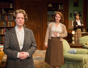 The entire action of the play takes place in the school's warm, comfortable teacher's lounge (actually referred to as a "sitting room"). We meet a newbie to the faculty, the young and pretty Jean Wade, played to perfection in the Mint production by Emily Walton. While Jean is understandably somewhat nervous about the new assignment, she's looking forward to it in the way that enthusiastic, idealistic young people look forward to things. But, almost immediately, she begins to be faced with the quirks, petty jealousies, and frustrations of the other teachers, including Miss Marjorie Strong (Mary Bacon), Miss Ruby Ridgeway (Kate Middleton), Mademoiselle Vernier (Dee Pelletier), and Miss Margaret Willoughby (Aedin Moloney). Though all of this starts to wear on Jean to a certain degree, nothing terribly dramatic happens until she runs afoul of Miss Connor (Kellie Overbey), a very frosty older woman who jealously guards the manuscript of a "History of Beautiful Acts Throughout the Ages," which she of all people has been working on for 20 years. The antipathy between these two becomes so acute that, when Connor's manuscript is discovered ripped to shreds, Jean is the prime suspect. Women Without Men exists in an extremely circumscribed universe centered around the teachers. Three of the students of the Malyn Park school (played by Alexa Shae Niziak, Shannon Harrington, and Beatrice Tulchin) do make an appearance, but fairly briefly, even if one of them turns out to be pivotal to the plot. The only other two characters are the headmistress, Mrs. Newcome (Joyce Cohen) and the Matron, Mrs. Hubbert (Amelia White). Some of the action and character relationships in the play might be viewed as soap opera-ish; at one point, I heard my theater companion mutter a response to a particular plot turn, the way my grandmother used to do when she would watch All My Children or Days of Our Lives. But the whole enterprise is elevated by the exceptional quality of Ellis's writing and the superb Mint production. Jenn Thompson's direction of the play could not be improved upon, and across the board, the acting is extraordinarily good even when judged by the uncommonly high standard that the Mint has set over the years. Every last woman (or girl) on stage gives a stellar performance in every way, and that extends to A-plus dialect work under coach Amy Stoller. Especially notable are Walton, perfectly cast as Jean in terms of both talent and type; and Overbey and Bacon, whose work I've enjoyed greatly in several previous roles, but never more so than here. Brava also to Pelletier, whose flawless French accent as Mlle Vernier charmingly complements the other women's Irish lilts. We never see more of the school than one room, but Vicki R. Davis's set design is so attractive as to make us think this would be a really nice place of employment if the interpersonal politics weren't so tricky. Equally fine is the work of the other designers: Martha Hally (costumes), Traci Kleiner Polimeni (lights), and Robert-Charles Vallance (wigs and hair). Prop designer Joshua Yocom has filled the room with wonderful stuff, including shelves packed with so many beautiful old books that you may feel the urge to borrow a few of them. (But don't!) More good news, as if all of the above weren't enough: Women Without Men is being presented at City Center Stage II, marking the Mint's first staging in a new location after many years in its former home on an upper floor of a building on West 43rd Street. That space had its pluses for the company, including permanence, but also its minuses, such as a wide but low-ceilinged stage and a seating area with very long rows, little leg room, and poor sight lines, all of which tended to induce a feeling of claustrophobia. None of these negatives exist at City Center, so this gorgeous production is even more enjoyable here than it would havebeen in the previous venue. As an important part of its overall mission to revive obscure plays, the Mint has made a specific commitment to present the work of forgotten female dramatists. Given the fact that the arts in general and theater in particular have always seemed to be far more progressive than other institutions in terms of inclusion, the relatively small number of female playwrights who have had multiple, high profile productions of their works over the decades and thereby achieved fame is both puzzling and disturbing. It behooves today's powers that be to address the inequality, and the good news is that there does seem to have been significant progress in this area over the past several years. In the meantime, many thanks to the Mint for bringing us rare gems by such playwrights as Rachel Crothers, Susan Glaspell, Teresa Deevyand Hazel Elllis, whom I had never heard of before this production of Women Without Men, but of whom I am now a huge fan.