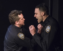 These are the very serious questions posed in the powerful production of Barry Malawer's drama Dead Dog Park at 59E59 Theaters, where the objective "truth" of what took place in the moments leading up to the incident is almost tangential to the outcome. Minimally staged (a table, a few chairs, industrial lighting) but tautly performed by a polished cast, the play draws its impetus from the hyper-politicized climate in which clashes between white policemen and black civilians have come under intense public scrutiny. In Dead Dog Park, the facts we can be sure of are these: Tyler, the 13-year-old boy, survives the fall but says he does not recall what happened; a witness claims to have seen the cop push the teenager; the policeman is arrested and tried, and lives are permanently damaged. The play offers no easy answer to the question of culpability. The policeman, Rob (Tom O'Keefe), vigorously denies he was doing anything other than trying to yank the boy back inside. His wife Angela (Susannah Millonzi), stressed to the breaking point, and Ricky (Migs Govea), his long-time partner on the force, have their own doubts that poison their relationships with him. But perhaps the most compelling character is the young man's mother, Sharonne, a working single mom, exquisitely and honestly portrayed by Eboni Flowers with a mixture of anger, weary frustration, and gritty determination. She recognizes her own responsibility in all of this (why is her son running around on a school day, and why doesn't she know what he's been up to or who he's been hanging out with?). But, still, she hires an attorney (Ryan Quinn), well known for his media-savvy grandstanding, to ensure that the cop will lose his court battle and the city will be made to pay through the nose. The attorney warns her she will be put through the ringer in court ("You can't just cry out for justice; it has to be won"), but she stands resolute. In alternating scenes, during which five of the six cast members remain on stage even when not performing, we watch the impact on all of the reluctant participants. Rob and his wife are unable to keep their marriage from disintegrating, and the tenuous friendship with his partner is left hanging by a thread. Under Eric Tucker's fine-tuned direction, the short (70 minutes) play is divided into three sections. The most tense of these is the first part, everything leading up to Rob's trial. You really cannot predict what the outcome will be. The rest of the play deals with the fallout after the trial, and there is a coda in which, after many years have passed, Tyler (Jude Tibeau) reappears, now a grown man. Has justice, indeed, been served? You will have to decide for yourself..