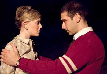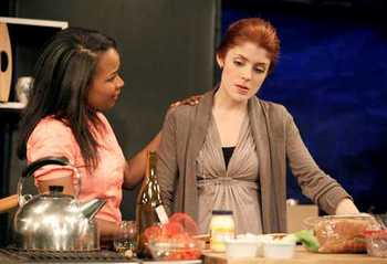That's not a good explanation for why the play is making its New York bow at a tiny Off-Off-Broadway venue in TriBeCa, rather than at any of the large-scale institutional companies (with very famous names) to which Reynolds reportedly shopped it first. But none other immediately suffices. All the show does is examine how three women deal with unwanted pregnancies during three different time periods (the early 1960s, the early 1980s, and the present day), reflecting on the legal and moral barriers that inform their choices. Which isn't to say Girls in Trouble is in any way tepid. Act I, which centers on a well-connected college-age John F. Kennedy acolyte (Andy Gershenzon) driving his one-night stand (Betsy Lippitt) across state lines to protect his future political career, probes the selfish mindset of one particular "couple" in the darker and dangerous days before Roe v. Wade. Taking center stage in Act II is Sunny (Eboni Booth), a spoken-word performance artist from the ghetto who defends her own decision as a way to deny her uncaring boyfriend the control over her he wants. In the third act, a liberal cooking show and NPR host named Amanda (Laurel Holland) faces off against a fervent pro-life advocate, Cynthia (Booth again), who desperately wants to change Amanda's long-made-up mind about taking care of the six-month-along pregnancy she just discovered. So straightforward and traditional in focus are the first two scenes, in fact, that they seem to defy the fuss surrounding this play. But, yes, the third act does go into stranger, more unsettling territory - and it's a big part of what makes the evening so worthwhile. Reynolds treats both Amanda's and Cynthia's viewpoints with the utmost respect, giving each woman equal time to both state her own views and attack the other's. Their exchange is lengthy and heated, yes, but disturbing only for the graphic descriptions of the abortion process that Cynthia deploys to try to convince Amanda to give birth. "Stomach-curdling" is one appropriate adjective; "sobering" could well be another.