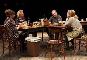 As both playwright and director, Nelson weaves these concerns cagily, almost invisibly, into the fabric of the playpractically as background noise to the melody of how anyone, particularly the devastated Mary, will be able to live without Thomas. But they resonate with unexpected force as the Gabriels survey the battles they're being forced to fight against everyone who thinks they know better than the "country hicks," and thus reflect the mood of a dangerously disaffected nation. Donald Trump is name-checked only once; so is Bernie Sanders. Yet the echoes of their messages to those who fit into exactly that groupwho are hungry for real change from the stuffy elitesresound loudly enough that both of them almost become major characters in their own right. If, indeed, a thorough exploration of that mindset and how it may or may not influence the lives and choices of these ordinary, not-easily-persuaded people (perhaps unsurprisingly, all appear to be confirmed Hillary Clinton backers) is what Nelson has in mind for "The Gabriels," it could be a gripping journey indeed. (There are two more chapters to come this year, the last, naturally, opening and set on election night, November 8.) And what's here suggests that that isn't only possible, but perhaps likely. The stumbling block (for now, anyway) is that almost all of the characters are pretty drab. This is not the fault of the performers who, in the tiny LuEsther Hall (cozily configured in three-quarters-thurst style and decorated, by scenic designers Susan Hilferty and Jason Ardizzone-West, to mimic the "Apple" home of the Anspacher), craft magnetic, almost impossibly real personalities for them and yank you into their minds and hearts. But because the Gabriels are defined primarily by their links to Thomas rather than anyone living, so it's as though you're observing a half-dozen three-dimensional figures trapped in glass boxes, interacting with each other at the surface level but not below. The Apples, in both their world and ours, needed to be together; so far, the Gabriels do not. Only Mary, as the fulcrum, is the exception, and then because Plunkett demands it. She portrays a devotion utterly uncluttered and unyielding, and ill-equipped for surviving without the object of its affection, and this casts a corrosive pall over all her words and actions. Mary kneading bread dough is an activity fraught with loss; she is barely able to hold herself together as she relives the halting, lurching steps Thomas took between table and desk; and when the pain becomes too great, you fear that she'll implode from the weight press inward on her soul. Plunkett mines every bit of the agony from these moments and a thousand others, and, even more important, holds together the play by showing how all the other relationships are her lifeline, and all that's keeping her from joining Thomasand Americain the abyss. It's a masterful performanceone of the best I've seen Plunkett give, which is really saying something, and more than enough on its own to justify Hungry as a springboard for a year of remarkable theatre from Nelson and his cast. If, at this point, not all the pieces come together, they do offer the hint of a picture we, and those who would govern us, desperately need to see: of a land and a people left behind, grasping for answers and absolution in a country that is too often committed toeven dependent on their unquestioning, unheard assent.