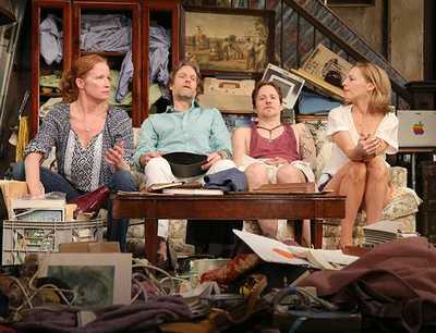 And it's all apparently simple to begin with, too. The (grown) children of a recently deceased man arrive with their families at his house in Arkansas, determined to make the place presentable before it's sold. No easy feat: The former plantation home is both run-down and crammed to the brim with useless objects collected over a lifetime that suggest their owner was sentimental at best and a hoarder at worst. They all have their problemsthe oldest, Toni, the executor, is uptight; older brother Bo is positive he can do better; and younger brother Franz, who didn't even publicly acknowledge Dad's death, isn't even supposed to be there and isn't wanted in any event. But assuming they can endure each other for a few days, they're all here for the same reason: to say goodbye. Slowly, though, they begin to wonder to whom. A book of disturbing photographs of lynched blacks, discovered on a shelf, would seem out of character for the man who raised these people. Or, maybe not: Bo's Jewish wife, Rachael, insists she heard Dad use ethnic slurs toward her a few times, though no one is quite sure whether to believe her. Were the photos really his? Were they left by the previous owners, or the numerous visitors who've passed through the house? And are there more thingsmaybe even worsestill to be found on the property, which disturbingly includes a graveyard for all the slaves who died working here once upon a time? With Appropriate, Jacobs-Jenkins demonstrates a compelling storytelling skill that was not always in evidence with his Off-Broadway debut work, Neighbors, in 2010. He adeptly skirts the line between the necessary and the uncomfortable, raising questions most of us would prefer were not asked in real life. The photos, surreptitiously passed from person to person as if pornography (and affecting many of the recipients in similar ways), become a powerful symbol of the complicated relationship even today's enlightened whites can have with race. The matter of how they're dealt with at every step along the lineshould they be shown? hidden? sold? destroyed?is strangely absorbing, even if you think you know the right answer. Here, as in Neighbors, however, Jacobs-Jenkins plots a bit broadly, leaving certain elements and events looser than is absolutely ideal. Whether the characters here absolutely need to be coping with the once-every-13-years emergence of a particular breed of cicada, for example, is not entirely clear; too many of the characters are saddled with too many crippling problems (Toni's son, Rhys, is especially a bundle of bewildering psychological issues that are insufficiently explored); and a number of events in the second act, particularly an explosive brawl and the final resolution to the adult children's conflicts, do not ring true. Ultimately, alas, neither does the production, as Jacobs-Jenkins's intense and surprising writing is never matched by what we see onstage. Director Liesl Tommy makes good use of Clint Ramos's crammed-to-bursting, two level set, which Lap Chi Chu has hauntingly lighted. But there's an acrid stuffiness about the proceedings that slows down the action and keeps much of it from being either tense or convincing. You rarely feel, as you ought to, that you're at a kind of historical crossroads no one here is equipped to approach; everything plays just a little too fake. This also extends to the actors, most of whom are even more at odds. Johanna Day observes Toni as if at a distance, but does not display much emotional connection to this woman who must hold herself together even though every part of her life is crumbling. Michael Laurence makes Bo stiff, intractable, and little else, an obstacle he can't easily evolve from. As Rachael, Maddie Corman tries but fails to marshal the same comedic resources and depth of feeling she did to such good effect in Next Fall. Patch Darragh and Sonya Harum, as Franz and his girlfriend River, come closest to balancing the necessary rage and acceptance in their performances, but are still fairly flat. As the various children, Izzy Hanson-Johnston impresses most as Rachael and Bo's straightforward daughter Cassidy, though Mike Faist plays Rhys combatively and well, and Alex Dreier is a young charmer as Cassidy's brother, Ainsley. Dreier, by the way, is responsible for the evening's most chilling moment, when the crimes and uncertainties of the past become impossible to ignore and everyone has to accept that neither the patriarch nor each other are exactly who they once believed. It's a vivid vivisection of white guilt given physical form, and a fascinating investigation from an African-American playwright who's once again unleashing his distinctive voice and outlook on what race means today. If Tommy's spin on Appropriate doesn't pack the fully devastating impact it should, it still leaves you wondering whether you know and can trust even the people closest to youor, for that matter, yourself.