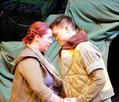 Well, maybe not so right. Not when the show is the nightmarish excursion into Grand Guignol known as Dark Water, a gripping new work by David Stallings. In it, the playwright takes the scalpel to the impact on marine and wetlands life of the 2010 Deepwater Horizon oil spill in the Gulf of Mexico. This was the largest such accident in history, causing countless deaths to sea life, with aftereffects that are being felt to this day. Dark Water, a production of Manhattan Theatre Works at the 14th Street Y, is truly a remarkable feat of writing. In creating a drama equal to the task of relating this devastating event, Stallings has immersed himself in the literary style of the Jacobean playwrightsrhyming couplets and allpiling on visceral images that would make Sweeney Todd seem pale by comparison. Things start out pleasantly enough. You enter the theater on a waterfront scene, a set of concrete stairs leading down to the beach, with little sea creatures hanging from the sides. In the foreground, you can hear the waves coming in, and in the distance the unmistakable sounds of toe-tapping New Orleans jazz. Then out steps Gullet, a bloodthirsty seagull and a supremely nasty piece of business (played to the hilt by Brian Silliman), who declares: "Today is a day for entrails!" Indeed it is. But first, the rest of the players. The story centers on a quest by Barnacle (Diánna Martin), a savvy sea turtle who sets out to rescue her daughters from the encroaching oil-and-tar-choked "dark water." She is accompanied on her journey by her hotheaded son Weed (Chester Poon), who so angers Gullet that the bird spends much of the rest of the play plotting his murder. Along the way, they encounter many other creatures, few of whom understand the threat of annihilation that they face. One who does is the compassionate dolphin Daedalus (played with melt-your-heart charm by Antonio Miniño), who speaks in alliterative phrases and longslike Hans Christian Andersen's "Little Mermaid"to walk on land and express his love for a woman who had helped to rescue some of those who were harmed in a previous oil spill. Daedalus offers to help by allowing Barnacle to ride on his back as they swim towards the "dark water" on the rescue mission. Also on the heroes' team is Foam (Erica Lauren McLaughlin), another young sea turtle who becomes Weed's friend, then mate, then the designated bearer of possibility for future generations. Others we encounter are more like Gullet, selfish and cruel and heartless. There is the fish Sheepshead (Susan G. Bob), whobefore she became too old to produce eggswould eat her offspring, both to satisfy her hunger and, as she claims, to prevent their starving in their habitat, a dying reef that she treats as her fiefdom. ("To save them, I ate them," she explains nonchalantly). Then there is Blue Heron, vain, territorial, and vicious as the others of her ilk, brilliantly played by Kathleen O'Neill in an utterly perfect set piece that seems to have sprung from the mind of a most perverse Lewis Carroll or deranged Aesop. As Barnacle continues on her desperate journey, there are still others we meeta pair of frogs, a wily crocodile named Tears (Lily Drexler), Charmer the snake (Stephen Conrad Moore), and the goddess Sea Urchin (Emily Hartford)and the playwright has given each of them a distinct personality and purpose. It is clear that director Heather Cohn and the cast are thoroughly committed to the production, with several of the actors called upon to play two or three roles, sing a cappella, and even tap dance as they depict a world gone mad due to human greed and interference with nature. By the time we have reached the end of the perilous journey, there have been entrails galore, and all that remains is a thread of hope through the rescue of a few of Weed's sisters. Even that bit of hope is a precarious one, as the floating and spreading oil catches fire, forcing the wildlife to flee or die. All told, Dark Water is a breathtaking work, a rich and powerful allegory that is both exceptionally literate and a searing cautionary tale and call to arms of the sort that seldom finds its way onto a stage. It deserves to be widely seen and talked about and acted upon. But you should probably leave the kids at home, unless you are prepared to do a lot of explaining before and after the performance.