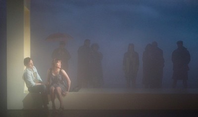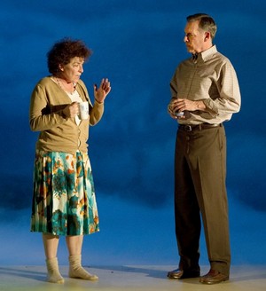 To communicate the evolution of Anna and Sean's partnership over seven years almost entirely from the wingswe never see the couple meet, date, or sleep together, for exampledemands not just outstanding actors, but a keen understanding of the flow of unstated emotions that drive all the elation and heartbreak everyone must endure. Gold possesses this quality in abundance, letting it run wild only in isolated moments, as when Anna is sparring with her father, Adam (Cotter Smith), over a cryptic entry in her mother's diary. Otherwise, the control is extraordinary, with the most powerful scenes being the most unexpected: Helena's near-breakdown at Anna's launch party, Sean's last-ditch reunion with his self-destructive ex (Molly Ward), and, most movingly, Linda conveying her earned but uneasy grace to Anna and her father just before the kids marry. Bertish may give the most sculpted and satisfying performance, so gently modulating Linda's evolution from despondency to reignited hope in the world that her journey (again, conducted almost entirely in the background) becomes its own explosive subplot. But Bush and Darragh are charming as the reluctant lovers, she a picture of city-weary smartness and he embodying the essence of old-world know-how. Smith, Ward, and Kit Flanagan, as Adam's dying friend Kay, strike the cleanest and clearest notes in their roles as the more serious onlookers. Buell, Heisler, and Matthew Rauch, playing both Anna's ex and Helena's unwitting backwoods savior, tend to pile on the comedy a bit too strongly. But they're reined in for the most part by Gold and Doran, working in splendid concert to keep each of the play's 20 breezy scenes resolutely real. Even designers Paul Steinberg (set) and Jane Cox (lights), get into the act, morphing the frame-like wagon on which most of the play unfolds into an eerily accurate vista of the cliffs of Donegal for the evening's climax. Flooding the stage with dark and mist, they change the theater from a place capable of holding everything and everywhere into a microscope that can examine only these two worthy people at the beginning of their exciting and terrifying adventure together. Anna and Sean's problem is the one that can easily afflict us all: getting lost in life merely by living it. All they can see are the little things that never worked out, the disappointments that can so easily drive them to despair. Gold and Doran, however, keep our gaze fixed on what matters most. "It's awful, isn't it?" Anna asks, soon after she and Sean first meet. "Getting to know someone." Maybe that's the case in the real world. But in the rarefied universe of Kin, it's nothing short of magical.