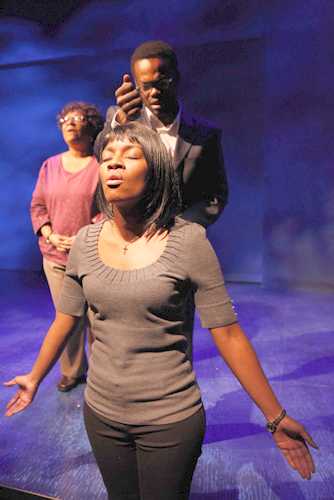As long as the play and the production, which has been smartly directed by Chay Yew, hold tight to that center, it floats as few recent plays have. Its story about a black mother (Myra Lucretia Taylor), named Patricia but commonly referred to as Pickle, and her almost-a-woman daughter, H.J. (Kianné Muschett), coping with the twin specters of religion and the environment should not be fresh enough to be affecting. And the use of an outsider who's truly connected with the land and the sea - the Ethiopian "e-God-ogist" (a priest and protestor in the making) Abebe (William Jackson Harper), who's staying with the two while he's in college - should seem corny rather than keen. But Corthron has aligned their problems and personalities so tightly any potentially devastating looseness never has a chance. Pickle, still smarting from the death of her youngest child, Carve, has been rendered psychologically inert, and hears voices (some of which - literally - come from the kitchen cabinets). H.J., named after escaped slave author Harriet Jacobs, is suspicious of God, and won't be convinced by either her mother or their live-in. Abebe protested a megadam in his own country, and is leading the charges against one Nestle is determined to build in America. All this proves, even before the end of the first act, a powerful setup for alliances for and against the various abutting concerns, as each person tries to maintain his or her beliefs in the face of almost continuous assaults. As the action is set against a debilitating drought (going on some two months), the stakes are high for them all. But Corthron is up to the challenge, and the minute erosions and reshapings of beliefs and actions becomes jet propulsion for the second act, which is set in the aftermath of those decisions some seven years later. The introduction here of an "anti-Abebe," Tich (Keith Eric Chappelle), H.J.'s once-and-future fling, who works in a controversial industry, allows the playwright an even deeper look at the issues on which her play is constructed. That this particular specific is introduced so late is one of the reasons the play is sometimes more apt to jar than jolt. Its subject and the characters' political leanings let too much pass unanswered in the first act, which sets the second up for predictable confrontations, rife with spitting recriminations, yelling, and throwing things (including, of course, a full water jug). This puts an irreparable dent in what should be a smoothly running narrative about the complex relationship between people on two continents with their rapidly vanishing natural resources. The kind of pointed preaching in which Abebe engages in the second act seems to belong more to the playwright than the character, whose tactics had been established as considerably different. Leaping forward a period of time as long as seven years also gives the first act's concerns too much time to deflate. Pickle has progressed beyond her early grief, but we learn little about the woman she's become; Abebe's development is related in dialogue more than in Harper's performance, which is bright and engaging, but generally one-note; and the fifth character of Tay (Joshua King), a 10-year-old white orphan who leads a troubled life and seems to be a major early guidepost of the story, vanishes almost completely, taking with him the internalized troubles that starkly contrast the others' globe-spanning concerns. Thoroughly charming performances from everyone, especially Taylor (in high-art wistfulness mode) and Muschett (who proves here to be a mistress of the gently cracking resolve), help smooth the impact a great deal. So do Kris Stone's lovely set, in which Pickle's kitchen looks like an island on an endless lake (an artificial version of which we see briefly at the start of Act II), and Ben Stanton's lights, which alternately suggest dryness and drenching of several kinds. Yew's direction is luscious and emphatic, getting full value out of several crucial set-piece special effects, but doesn't neglect the more intimate feelings on which the story turns. It's Corthron, however, who provides the most specialness, even amid the clunkier moments. She weaves together attitudes and allusions deriving from sources as varied as Southern Negro spirituals, Beethoven's Ninth Symphony, and John Lee Hooker, giving each character a distinct voice that unites with the others as part of a sparkling, musical dialect that has no easy analogues. (Tarell Alvin McCraney, the author of The Brother/Sister Plays and Wig Out!, is close, if a bit less ethereal.) When these all sound together, especially in the literal and figurative baptism scenes sprinkled throughout the play, the melodies are truly absorbing. If A Cool Dip in the Barren Saharan Crick as a whole doesn't quite reach that level, it's only because it tries to do so much that some leaks are inevitable. (References to the Confederacy, some of the intricacies of Ethopian and Italian politics, and Abebe's convoluted romantic entanglements could safely be diluted or excised altogether.) But when the play is waxing its most lyrical, whether about activism of the environmental or evangelical varieties, it's one of the most refreshing of the season to date.