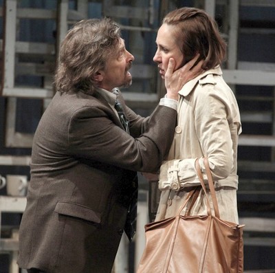 To give away much more would do a violent disservice to White, who's collected and ordered a series of fiery plot points to form the most engrossing new mystery of the season. (Only Stoppard's own Arcadia, now in revival on Broadway, tops it.) But the characters, and how White unveils them, are even more gripping than the story. Juliana acquires her outer steel and her inner softness in a captivating series of early scenes that shifts her between St. Thomas and its clinical aftermath. Ian's internal struggle between bitter resentment and unconditional love powers huge sections of the show, casting Juliana's own struggles in horrifying relief. Even Cash creates a single arc of development across her every minute onstageastonishing because she, like the fourth cast member, John Schiappa, plays multiple roles. P> Despite that, and despite long stretches of potentially impenetrable medical dialogue, nothing is ever obtuse or confusing. Mantello's conducting of the script's symphonic shifting between countries, cities, and even states of mind, is masterfulyou never question where or when you are, or why you've arrived there, even though the rapid oscillating between locales and atmospheres is as intentionally jarring for you as it becomes for Juliana. With the help of Justin Townsend's lighting, which always accents Eugene Lee's set (a wall comprising dozens of empty picture frames) to handsome but unsettling effect, the real, the false, and the in-between cohabit with natural grace. Boutsikaris fashions an astute portrait of a frustrated but affectionate man facing an apparently insurmountable challenge. His screams ooze with caresses and his most sorrowful protestations and revelations with joy, and unquenchable loss permeates even his sincerest proclamations of love. Juliana has forced Ian to live on every level, and Boutsikaris inhabits them all with touching aplomb. Schiappa is underutilized in his catch-all role, but Cash is excellent as the front-line forces guarding against Juliana's external attacks, particularly in a late, heart-stopping confrontation that charts the impact of Juliana's crusade on the real world. Metcalf tops them all, equally superb as Juliana whether businesslike and broken. She applies layers of desperation to simple scenes, and builds intricate webs of need that tangle and reform as events unfold. Every moment she ignites is unforgettable: her first pleading conversation with Laurel, her dual-raging against Ian and Dr. Teller as they struggle to diagnose her episode, and her headfirst dive into resignation when, after searching for it so long, she finally discovers the answer she's long sought. Metcalf's Juliana is by turns supple, astringent, obtuse, and givingeverything but false. Nothing, however, surpasses the climactic scene in which Juliana returns after a long absence to "the other place," the Cape Cod weekend home that has factored so prominently in her life. What she discovers there and what she must confront, for the first time on terms other than her own, drives Juliana to new depths of despair, and both Metcalf and White's scripts to new, soul-scraping heights. Juliana's experience is at once inconceivable and real, and a profoundly moving testament to the humanity within each of us that cannot be extinguished. This is the crowning scene, and perhaps the strongest proof that White, who has not had another play produced in New York, is a writer who must be watched. But like Juliana, he couldn't do it alone. With the help of Mantello, Metcalf, and everyone else involved, The Other Place takes you to another place: that transcendent level you can only reach in the theatre when the heart, mind, nerves, and soul operate in perfect concert.