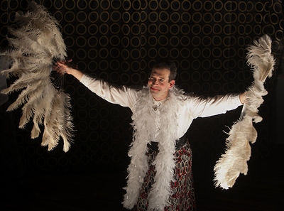 Legarce, whose writing has been translated from the French by Joseph Long, has chosen as the vehicle for his exploration the theatre, a place where fact is naturally muddy. The death or disappearance of a "great" star inspires reminiscences by her two singing-and-dancing-and-clowning backup performers (the fine duo of Michael Doonan and Darren Hill) and a mysterious gentleman (Jeffrey Binder) who was obsessed with her every action, her every line, and her every intentionso much so that within a few minutes he's already assumes her role and personality permanently. This actress, whoever she was, soon comes to live exclusively in the memories and interpretations of others. If that's the theatre in a nutshell, the quickly passing, ineffable essence of someone that can be conveyed only by first-hand accounts and not film or video, we're soon left questioning the merits of the woman they're lionizing. Wouldcoulda transcendent star conduct her career only in theaters so tiny that scant inches separate the backstage from the audience, and that can't accommodate her single request for a stool? How can someone change the world when they can't attract popular audiences, or in many cases audiences at all? And were her concepts of the theatre, and of presenting herself, an accurate reflection of her deepest artistic impulses, or her inane fumblings with tools she didn't know how to use to tell stories no one needed to hear? The details that emerge of her foundering livelihood, her questionable business practices, and her unnecessarily torrid personal life underscore the transformational powers of the stage: It's unlikely that such a figure would be tolerated, let alone celebrated, in any other profession. Yet as Binder's character vanishes more and more into the challenge of playing "The Artiste," we see just as much of the dedicated professional for whom "the show must go on" is more than a credo, but as essential as breathing, and who viewed every aspect of what she did and how she did it as though it was the only thing that mattered. Detestable as The Artiste can be, she's also an ideal, and there's value in that, even if there's perhaps rather less in what she ultimately produces. Such contradictions, which arise with dizzying frequency, are what keep Music Hall afloatthough its 90-minute running time is pushing it. Long's translation generally maintains a workable balance between earthy and lofty, though he'll usually err on the side of the latter, with the resulting operatic intensity granting many of the mundane recitations (about props, about costumes, about transportation) equal weight to those about, say, her storytelling philosophy, which can be a bit much to swallow. Zeljko Djukic's staging also keeps all the described events on one level throughout, leading to similarly inert emotions; part of the point is that no one feels as deeply as The Artiste does, but his insisting that our own feelings must not evolve with every (or any) new revelation is, in itself, off-putting. Binder doesn't skimp on the size or sweep of his portrayal of The Artiste, and his pursed smile and sweeping movements appropriately elevate even the mildest milliseconds to the electrical stratum of a curtain call. But his is a bland grand: complete, yes, but not encompassing or enveloping. All of The Artiste's world may indeed be a stage, but the glimpses we view of it, and of her interactions with it, hint at a detachment rather than an unshakable devotion, as though even she knows everything about herself is all an act. That's a fair spin on The Artistespend any time at all in the theatre and you'll meet at least someone incapable of turning off their performing personabut to justify everything that happens, there need to be additional layers that Binder never uncovers. Intentionally or not, this play reminds us that the curtain exists for a reason, but that acknowledging the distinct worlds before and behind it is not the same as fully comprehending them. Some people, like some plays, are simply determined to not be known; all we can do is take what they give us, and hope for the best. Music Hall could give us morea lot morebut it succeeds in presenting the dangers and blessings of the unknowable, the joys and sorrows inherent in trying to understand an art and its practitioners when the veil of secrecy that surrounds them is the source of not only our fascination and frustration but also their infinite power to entertain, move, and inspire.