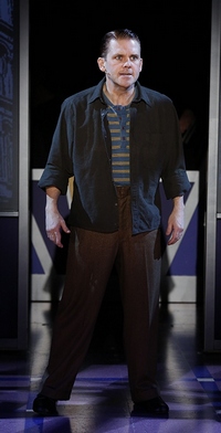 But if the script and score have received any work in the last year, it's not evidenced by what's onstage. Competing framing devices, one featuring a name-making Warner (whose stage time incomprehensibly qualifies him as a second lead) and one involving the 1978 SAG Awards, still make the first ten minutes a complete muddled mess. James's cherished wife and mother barely qualify as walk-ons. For that matter, aside from James's gung-ho union support and highly improvisatory acting techniques, you don't learn a ton about him, eithereven the musical itself can't summon enthusiasm about its title character. The only one who seems to arouse real interest, in the creative team or the audience, is Cohan: His songs ("Give My Regards to Broadway," "Harrigan," "Yankee Doodle Dandy"trust me, you know them all) are, as always, spectacular, and they've been frothily and frenetically choreographed by Joshua Bergasse with all the panache he brought to last season's revival of On the Town. Whenever Creighton launches himself into them, the effect is electric: great material meeting a great star in one breathless, bewitching explosion. That's something, even if everything else in Cagney is a dud. And it raises the question: Why not dump the pretenses and just star Creighton in a revival of George M!? He'd more than do it justice. More important, it would do him justice, a feat this fuel-deprived vehicle cannot accomplish.