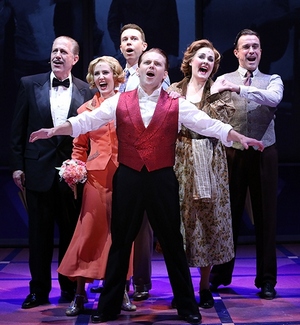 As James Cagney, the plug-size Irish lug who could hoof it in a pair of tap shoes as handily as he could fulfill the part of Hollywood's A-number-one gangster heavy, Creighton is giving the kind of perpetual-motion-machine performance that earns its purveyors handsome statuettes for their mantelpieces. (Given New York's current housing climate, it probably earns them the fireplace, too.) Throughout the nearly two and a half hours this interminable musical runs, Creighton is a constant source of energy and joy, plowing his way through scenes and songs that are corny (some intentionally so) but that demonstrate his triple-threat-plus skills to unbeatable advantage. Singing? His tenor is a vocal pop gun that, in its brash and burnished coloration, puts a smile on your face before it's finished ringing in your ear. For comedy, Creighton has impeccable timing, but he can drop into serious mode, too, and adopt a mien of genuine reflection that will quiet your laughs in an instant. And dancingneed you ask? The storm he taps up during the vaudeville and George M. Cohan sequences that provide this show with what little locomotion it can generate are almost enough to prove that old adage about April showers bringing May flowers. Much like Cohan and Cagney were before him, Creighton is a one-man entertainment machine, and is representative of the best its onstage practitioners have to offer in 2016. Creighton, alas, is also the chief reason that Cagney is such a dispiriting failure: When a performer is this good, you want everything around him to be, too. No dice. In fact, it's a borderline miracle that when Creighton is onstage, he's able to wake up this musical that he wrote with Christopher McGovern and Peter Colley long enough to hit a home run with it. Otherwise, it's as cliché, lazy, and cynical as fourth-tier show-biz bios get. Can't we all recite the plot even with no foreknowledge? A brusque young guy from the streets torpedoes his career by standing up for the working man and getting fired. On a whim, he applies for a dancing job, gets it (because his calves are good enoughthat's an original and unusual touch), and then lands a choice job on Broadway that by chance sends him skyrocketing into the Tinseltown stratosphere, where he's determined to change it for the betterand does. Of course, along the way, he also meets and gets his dream girl; does battle with the evil studio head Jack Warner and a red-scaring federal government; and yet somehow comes out on top as the industry's beloved headliner some 30 years later. And, naturally, he loves his mother. What sets apart the better musicals of this genre is typically the introduction of some kind of twist to a hackneyed formula. It's not Gypsy Rose Lee that we care about, it's her domineering mother, for example. Or Fanny Brice isn't a traditional beauty but must confront qualms about reversed gender roles long before they were commonplace. Cagney has none of that. The closest it gets is the implication that James was a communist sympathizer, except, you see, he really wasn'tso take that, Dies Committee, and stuff it down your throat! Librettist Colley and composer-lyricists Creighton and McGovern instead waste time with nonessentials, like a vaudeville montage, two painfully identical movie-making collages contrasting Warner's and Cagney's development styles, a challenge tap between James and Bob Hope (loosely tied to the film The Seven Little Foys), and three staged-to-the-hilt Cohan specialties, at least two of which don't pretend to connect to the plot. The five-piece band, led by Matt Perri, swings but the new songs are a pedantic bunch: Only Creighton's "Falling in Love," which finds James and his future wife stumbling over their words of affection for each other, displays any sense of wit.